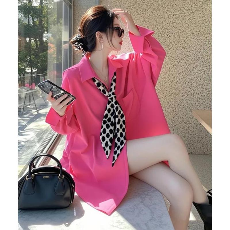 FA53343# 春秋季新款设计感蓝色领结长袖衬衫女洋气百搭上衣 服裝批發女裝批發服飾貨源