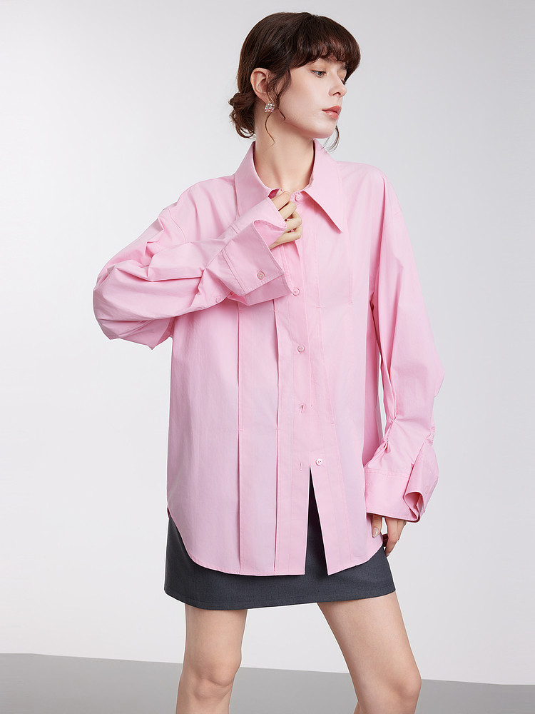 FA53741# 法式设计感小众气质粉色衬衫女春季新款小个子衬衣独特上衣 服裝批發女裝批發服飾貨源