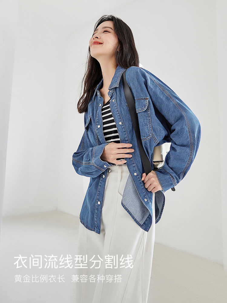 FA53743# 复古宽松长袖牛仔衬衫外套女春季新款别致设计感开衫外套上衣 服裝批發女裝批發服飾貨源