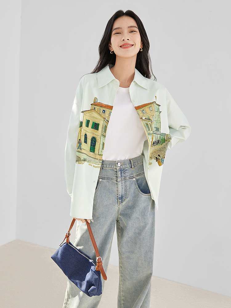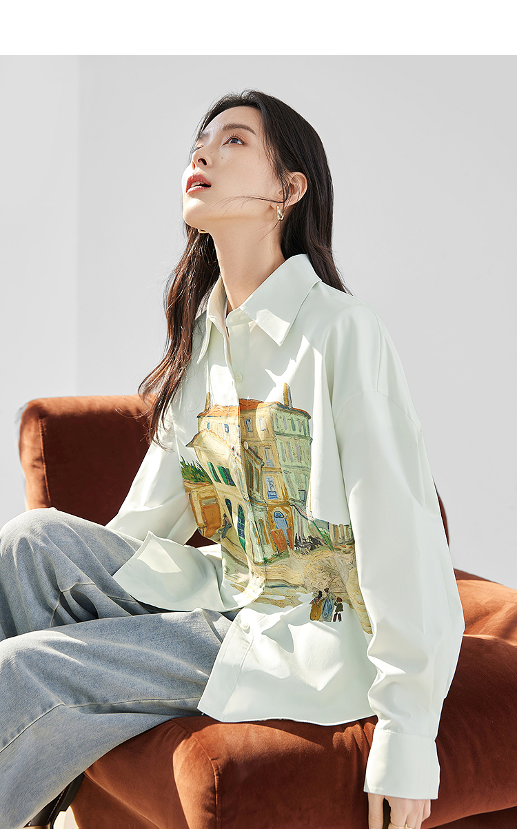 FA53745# 独特印花长袖衬衫女春季新款气质宽松开衫外套上衣 服裝批發女裝批發服飾貨源