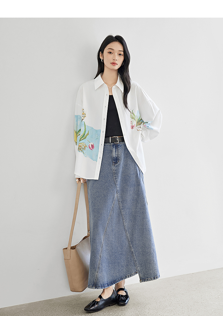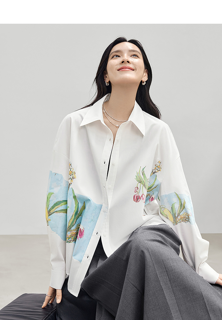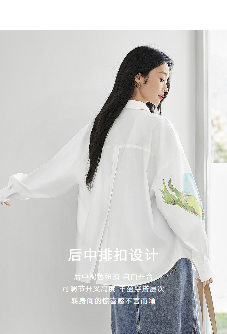 FA53746# 莱赛尔印花长袖白衬衫女春季新款小众宽松开衫外套上衣 服裝批發女裝批發服飾貨源
