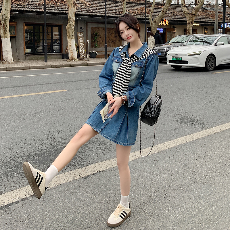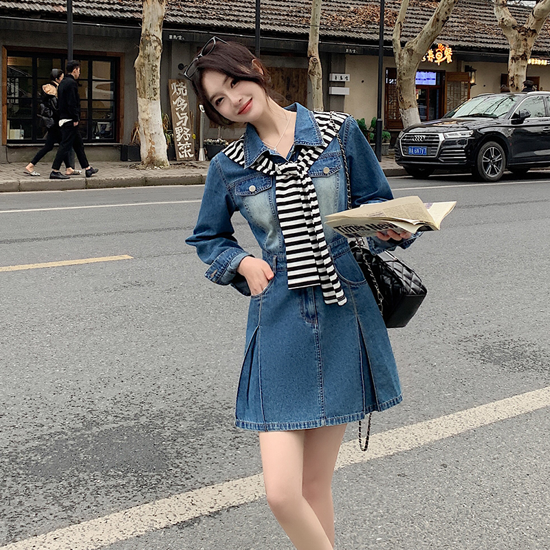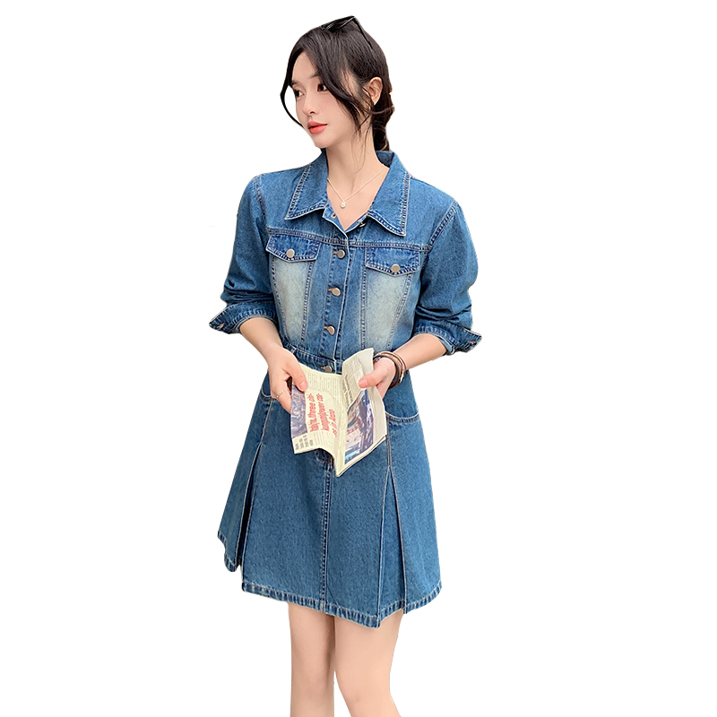 FA53990# 好质量复古港风牛仔短袖连衣裙夏季收腰显瘦衬衫裙女 服裝批發女裝批發服飾貨源