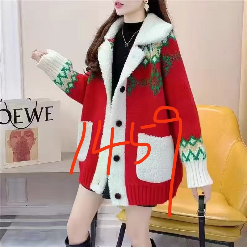 FA54692# 秋冬季加厚红色毛衣开衫女新款韩版宽松慵懒风网红针织外套 服裝批發女裝批發服飾貨源