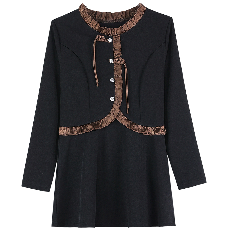 Home > 长袖雪纺衫、衬衫、上衣 > FA54716# 春装新款装减龄韩版修身荷叶边裙雪纺纯色圆领长袖连衣裙 服裝批發女裝批發服飾貨源