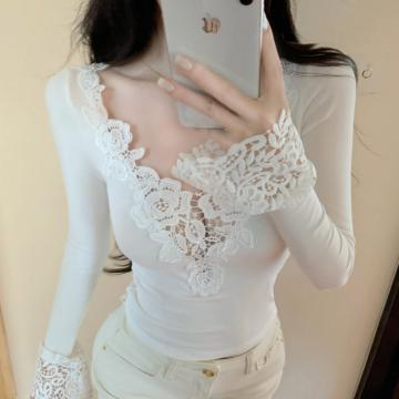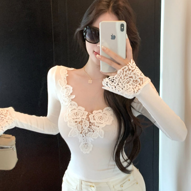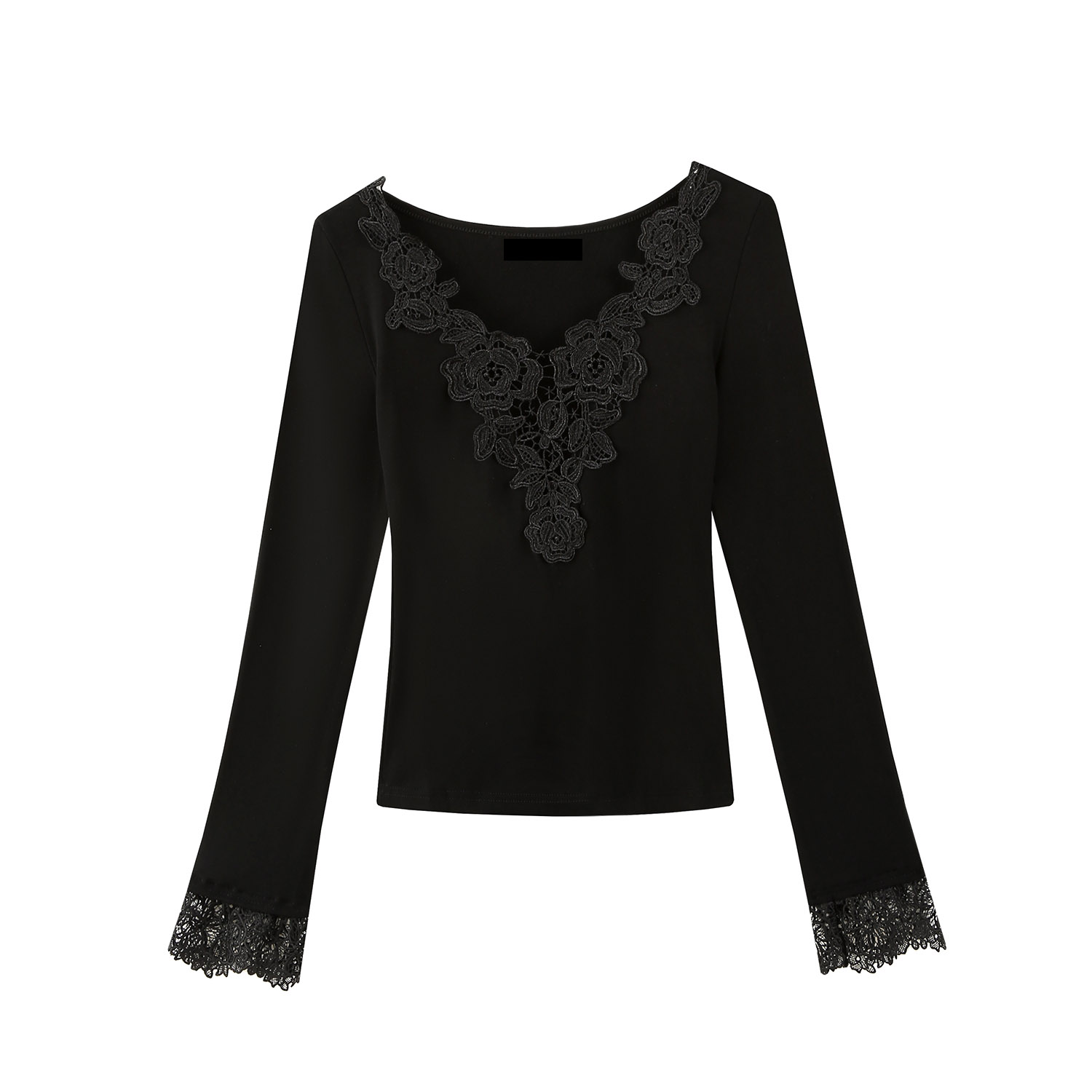 BY10426# 设计感拼接v领长袖T恤女秋修身内搭纯欲风打底上衣 服裝批發女裝批發服飾貨源