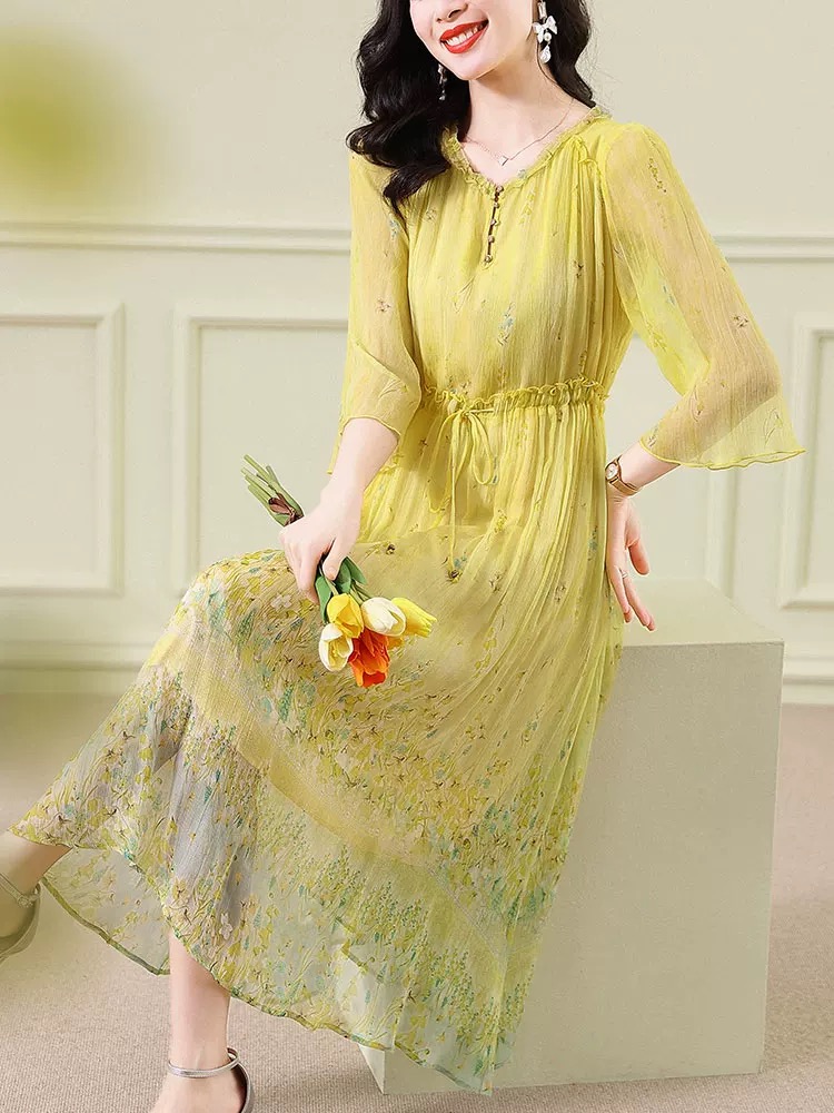 BY11341# 连衣裙春季新款高端精致收腰气质裙薄款桑蚕丝减龄碎花裙 服裝批發女裝批發服飾貨源