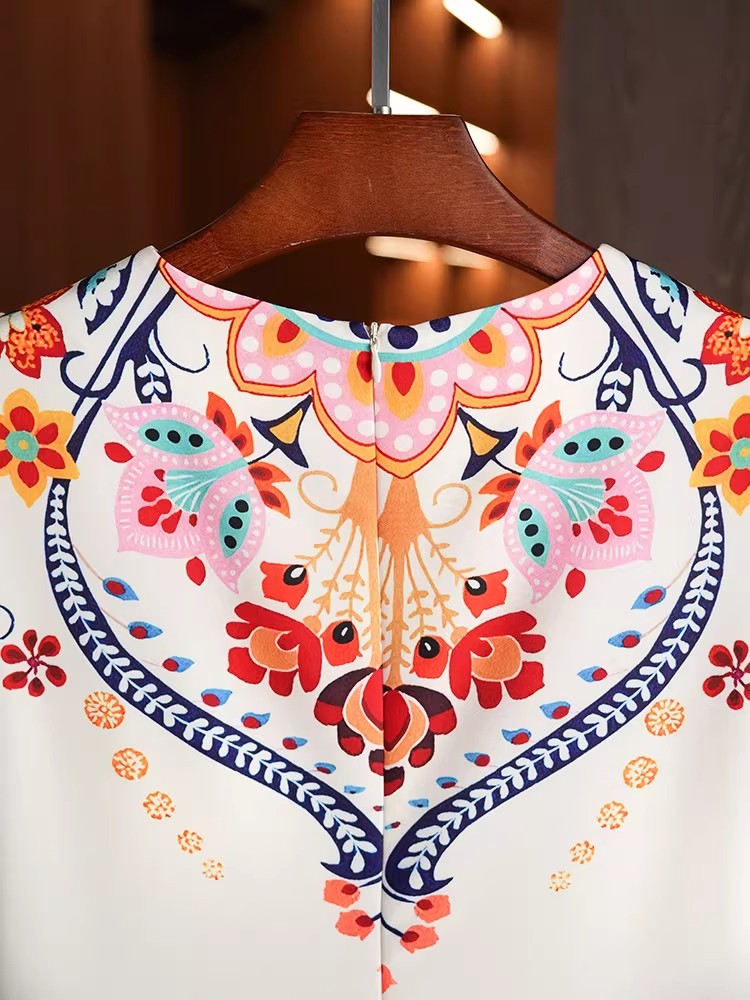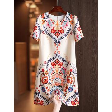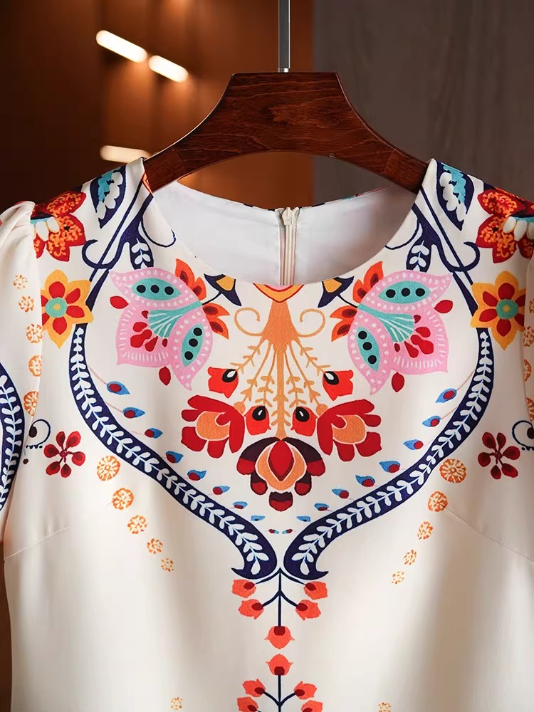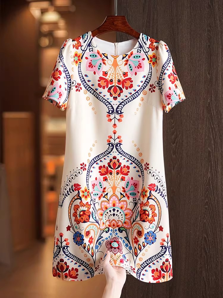 BY11372# 夏季新款复古绝美漂亮花色裙子穿搭减龄民族风短袖T恤连衣裙 服裝批發女裝批發服飾貨源