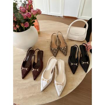 X-33069# 春季新款尖头后空百搭小跟鞋女 鞋子批发女鞋批发凉鞋货源