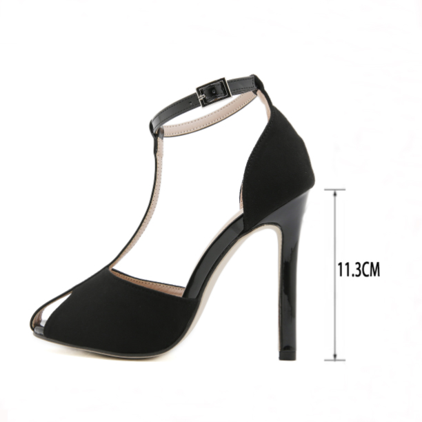 X-33093# 女士优雅T型带PU拼绒面细高跟超高跟凉鞋 鞋子批发女鞋批发凉鞋货源