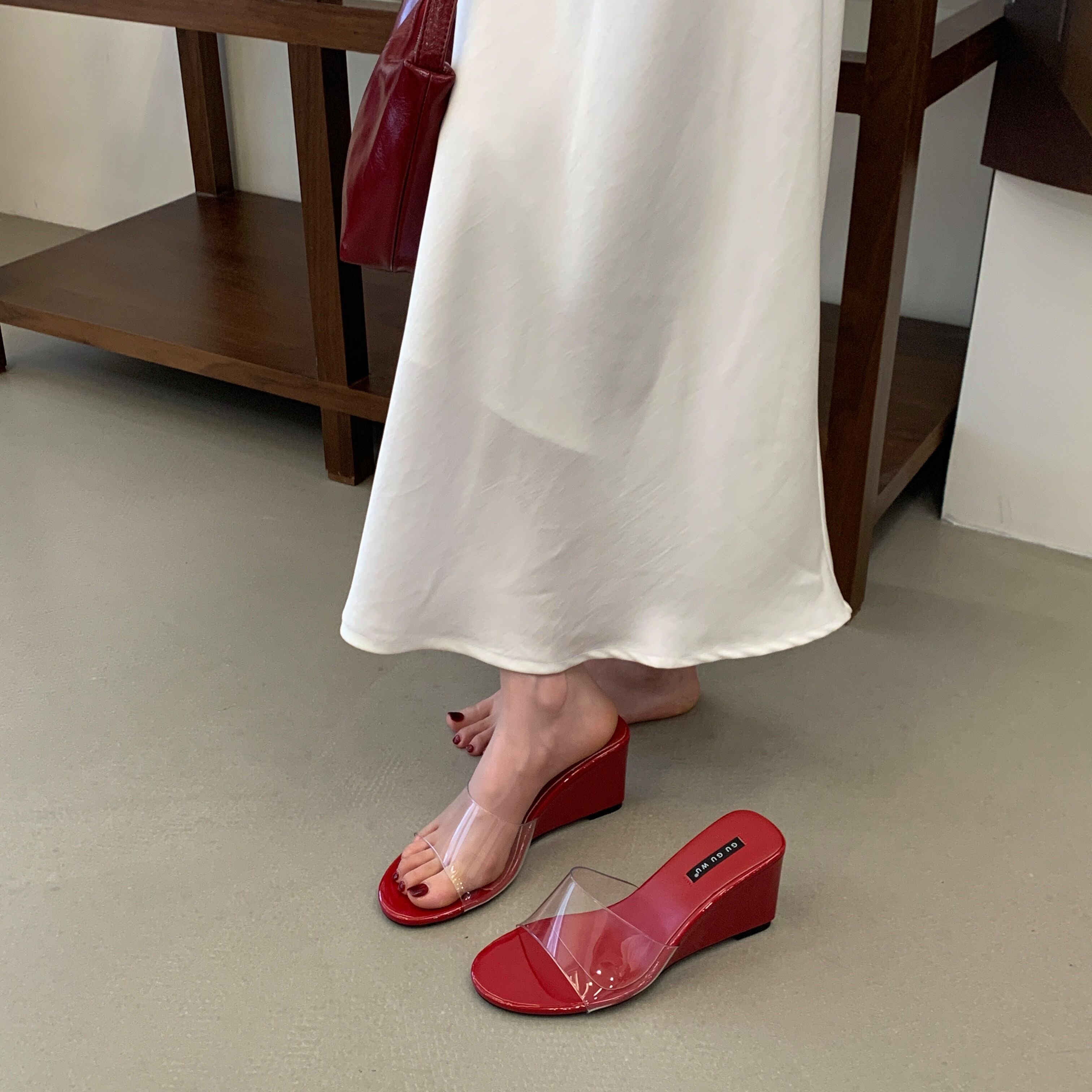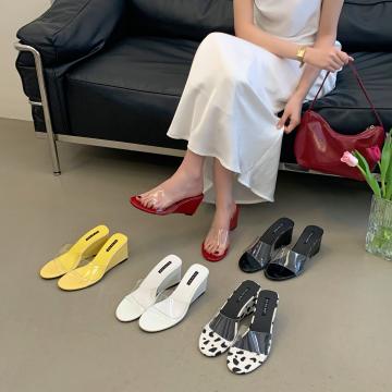 X-33100# 透明凉拖时尚坡跟拖鞋女新款外穿度假装海边半拖鞋高跟鞋 鞋子批发女鞋批发凉鞋货源