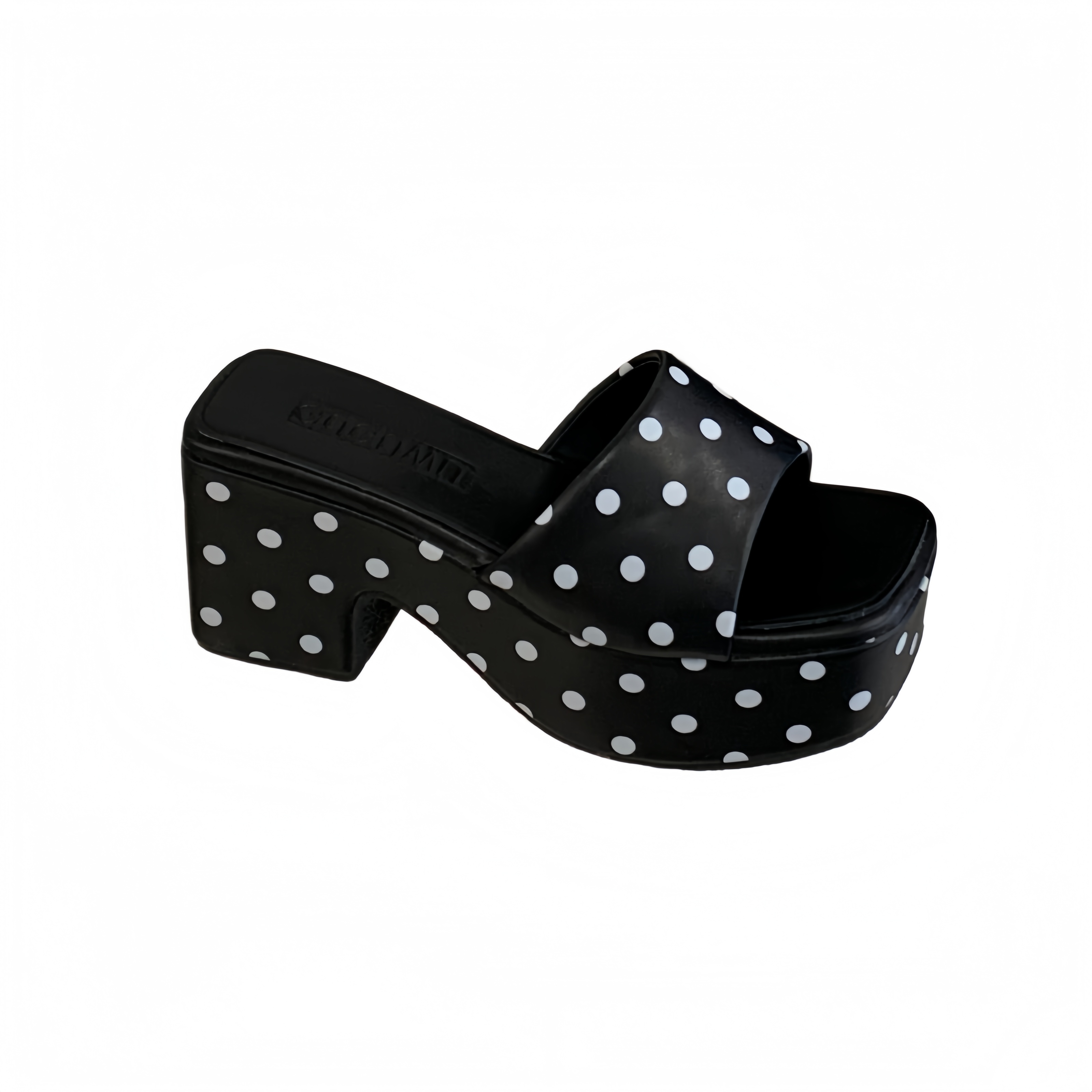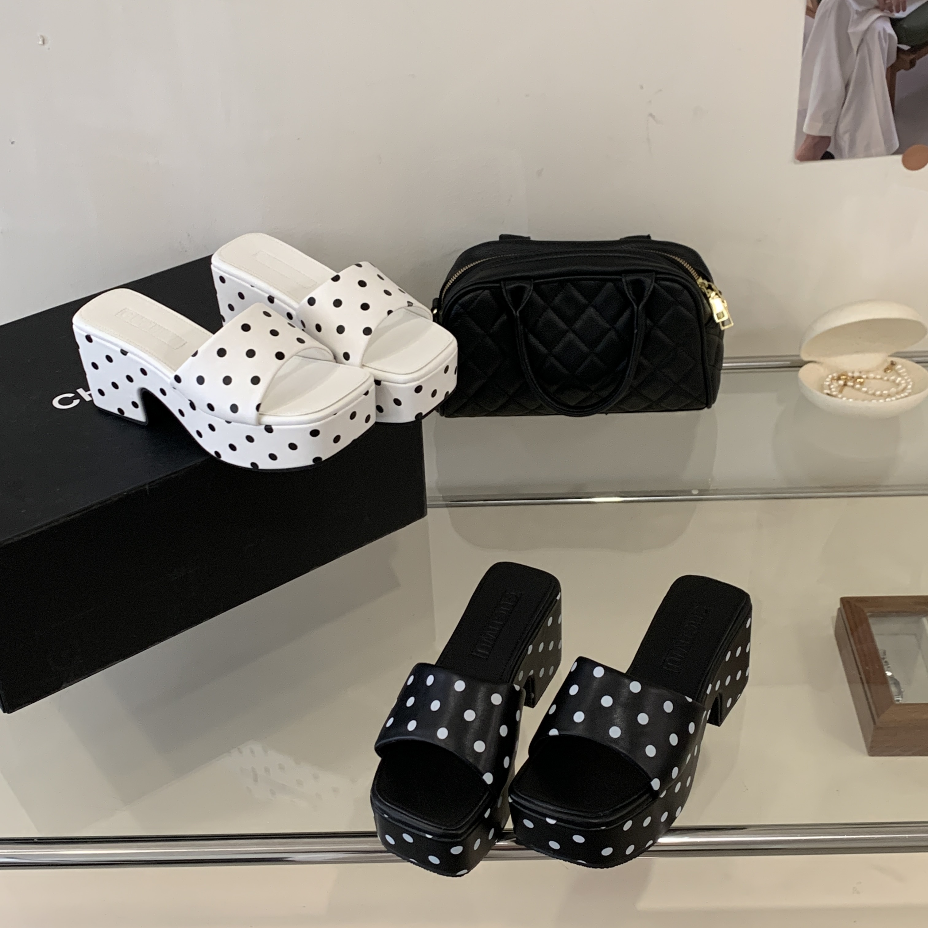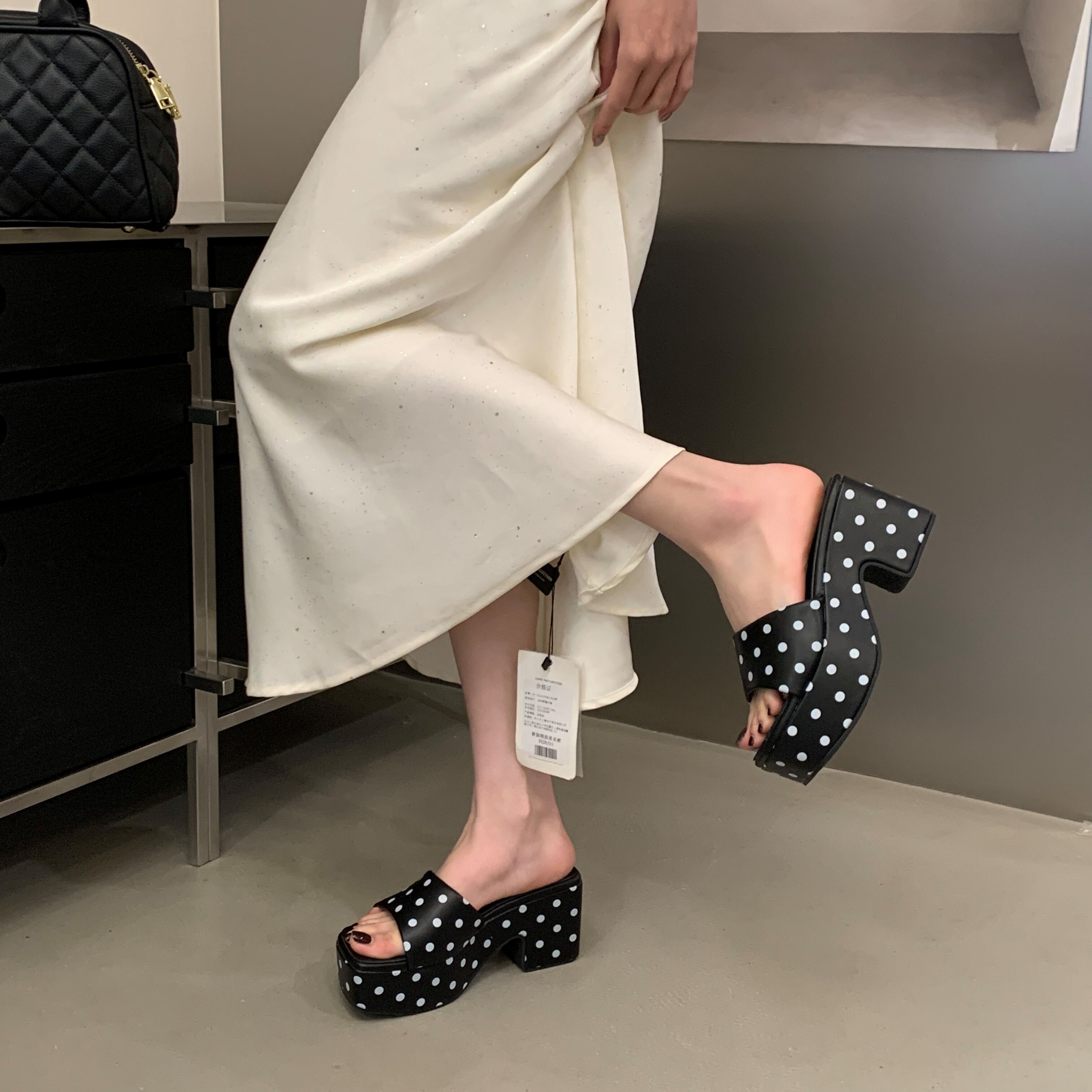 X-33105# 韩式波点一字拖女夏季新款外穿厚底坡跟防水台粗跟凉拖鞋 鞋子批发女鞋批发凉鞋货源