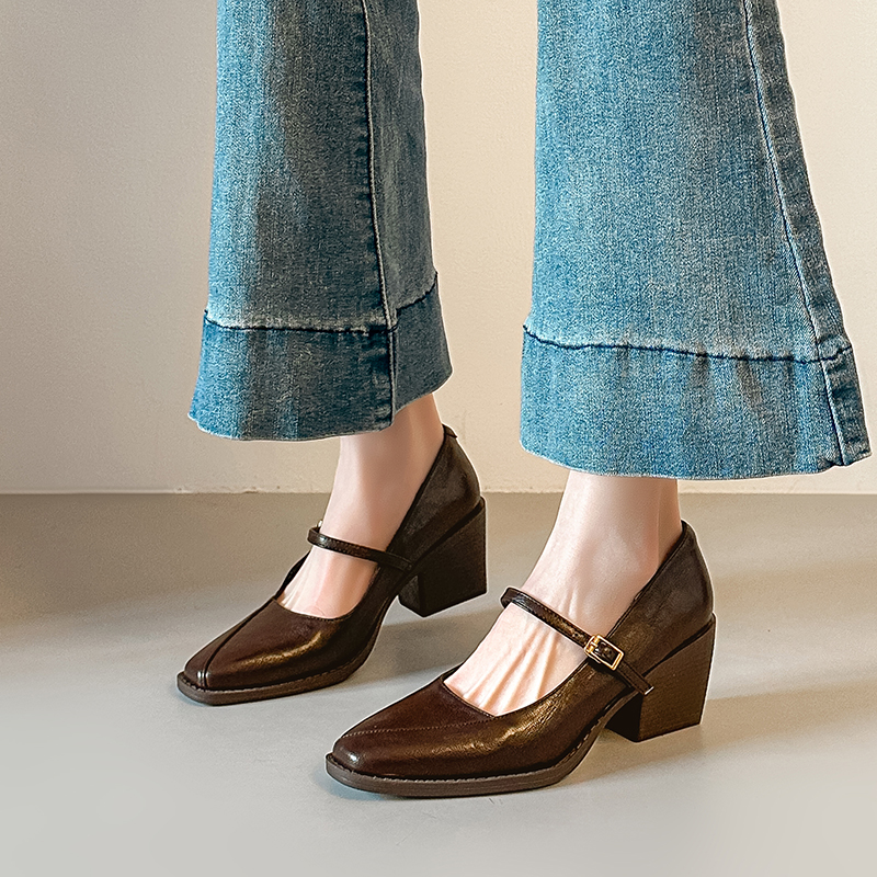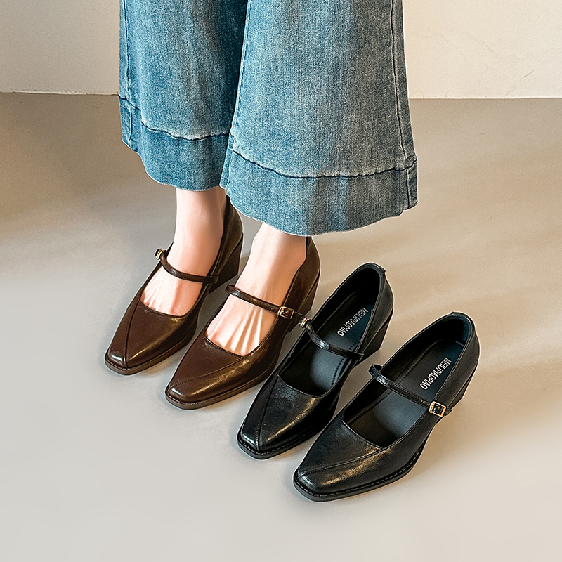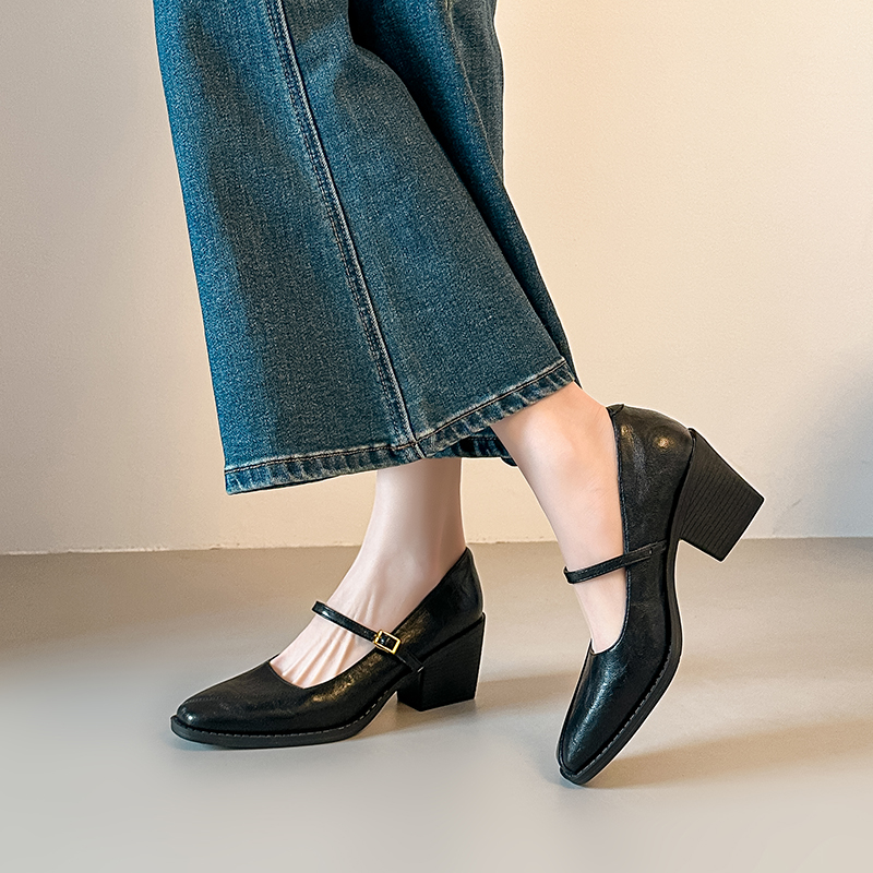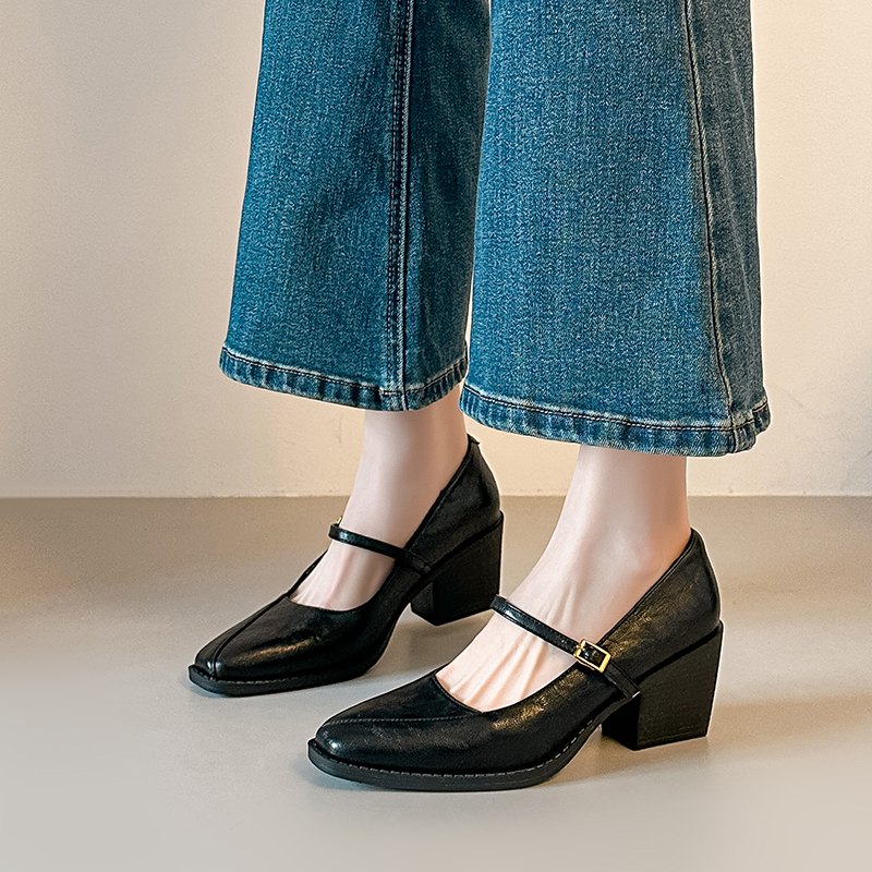 X-33118#小羊皮鞋子法式单鞋女气质不累脚高跟鞋粗跟工作鞋绝美玛丽珍鞋 鞋子批发女鞋批发凉鞋货源