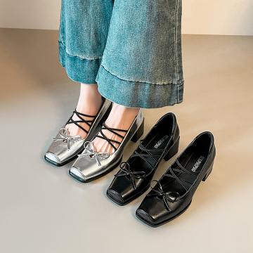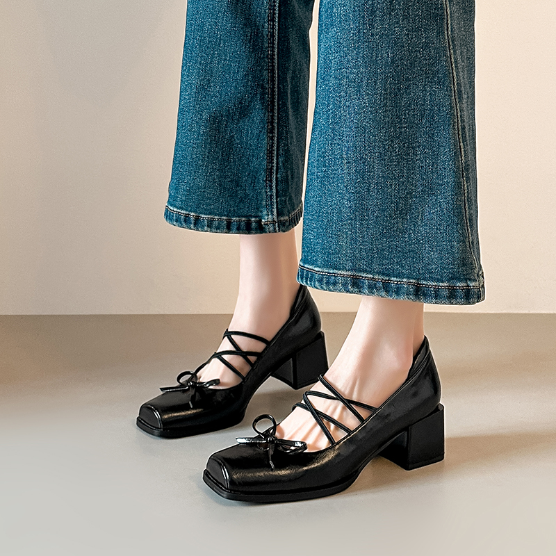 X-33120#小皮法式绝美蝴蝶结方头玛丽珍复古交叉带气质浅口单鞋子女中粗跟 鞋子批发女鞋批发凉鞋货源