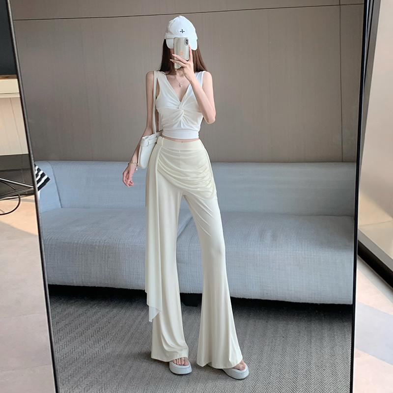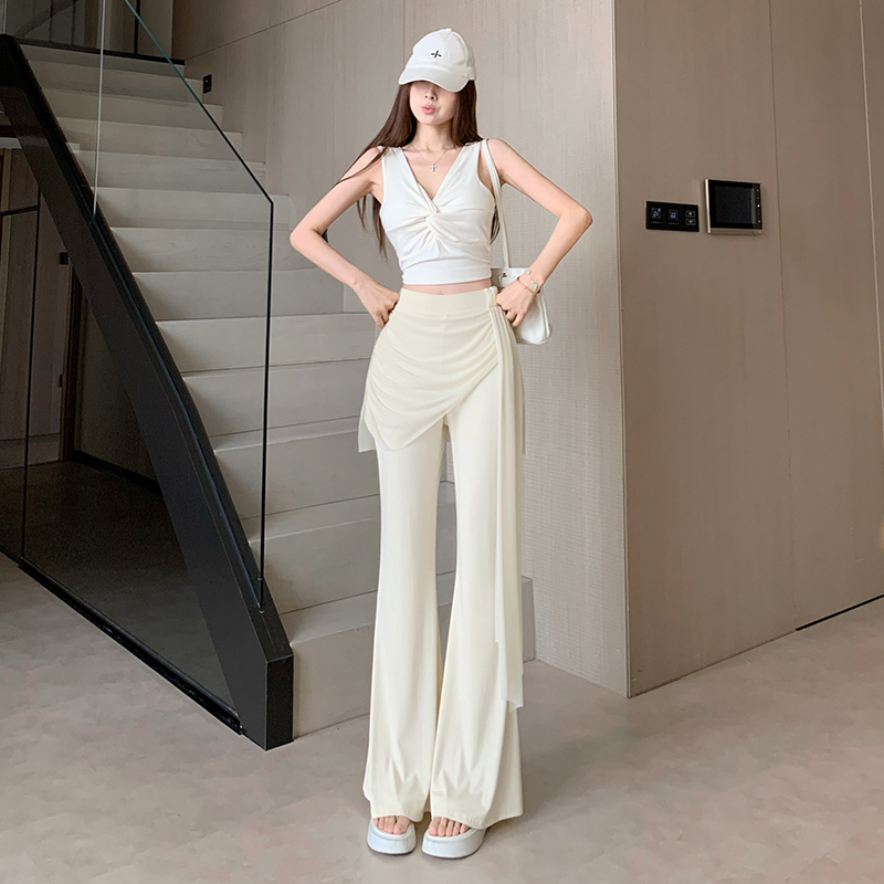 BY14124# 飘逸设计感洋气轻奢百搭显瘦蕾丝拼接假两件休闲微喇叭垂感长裤 服裝批發女裝批發服飾貨源
