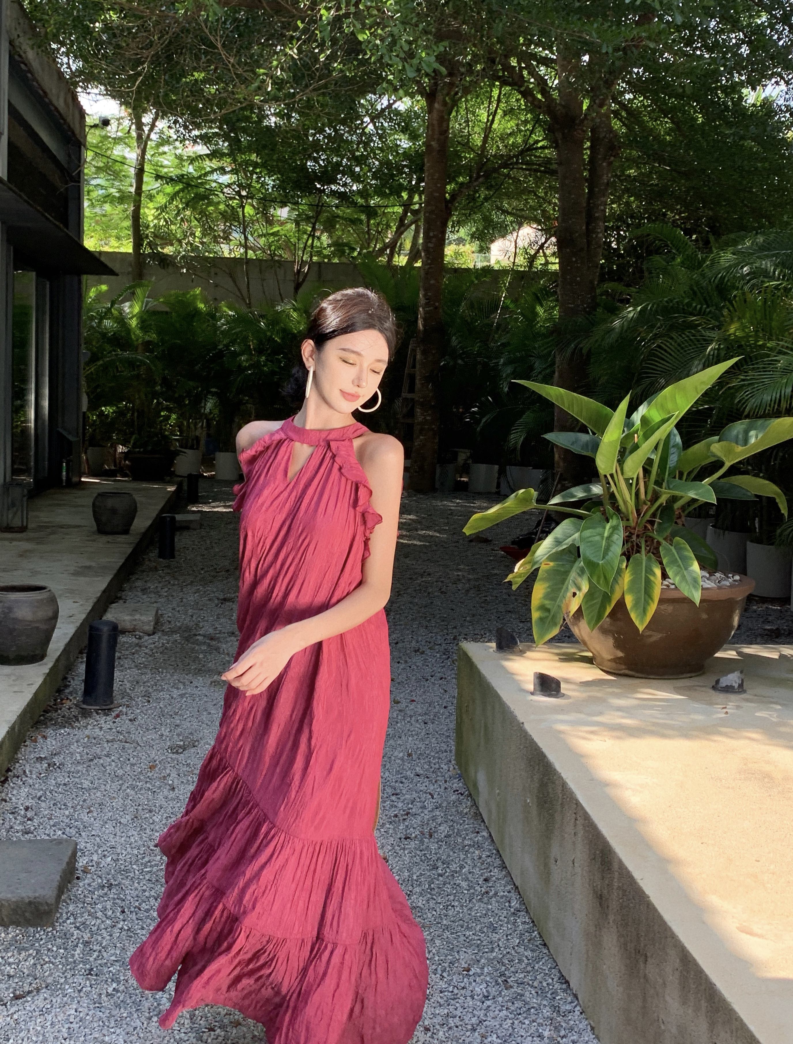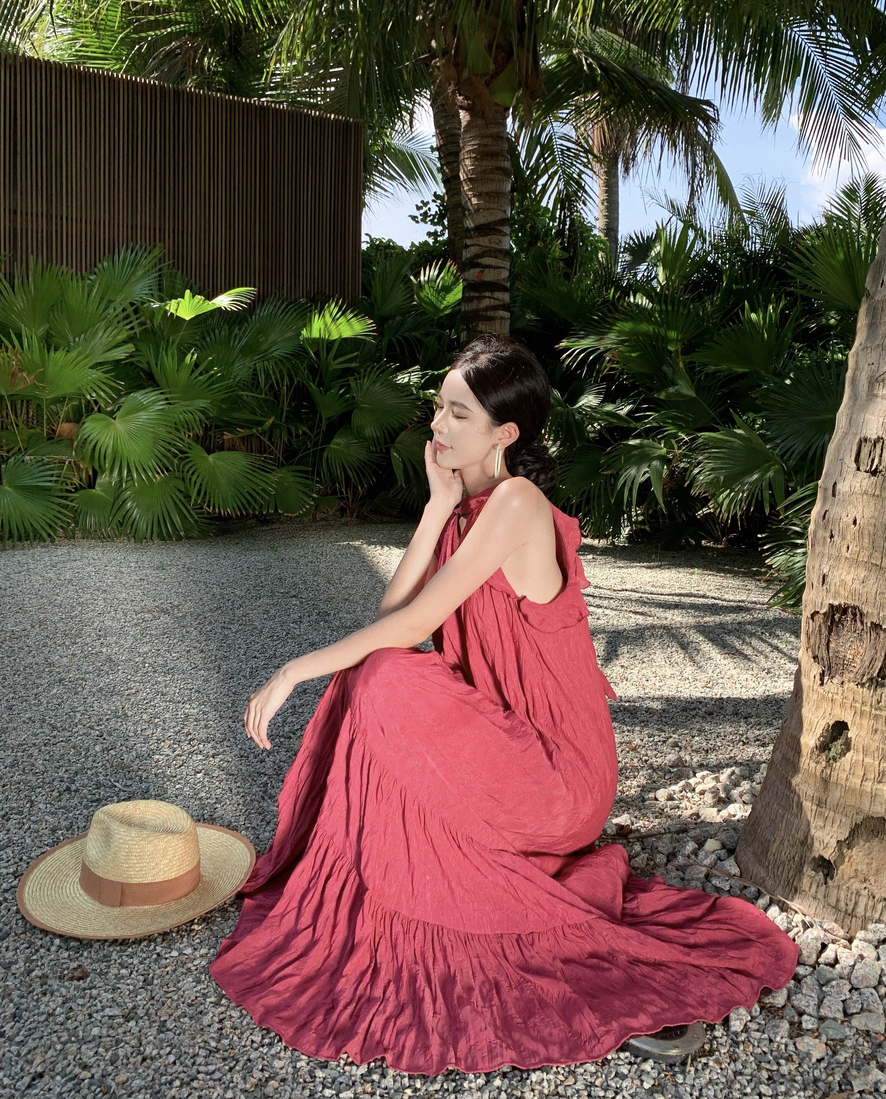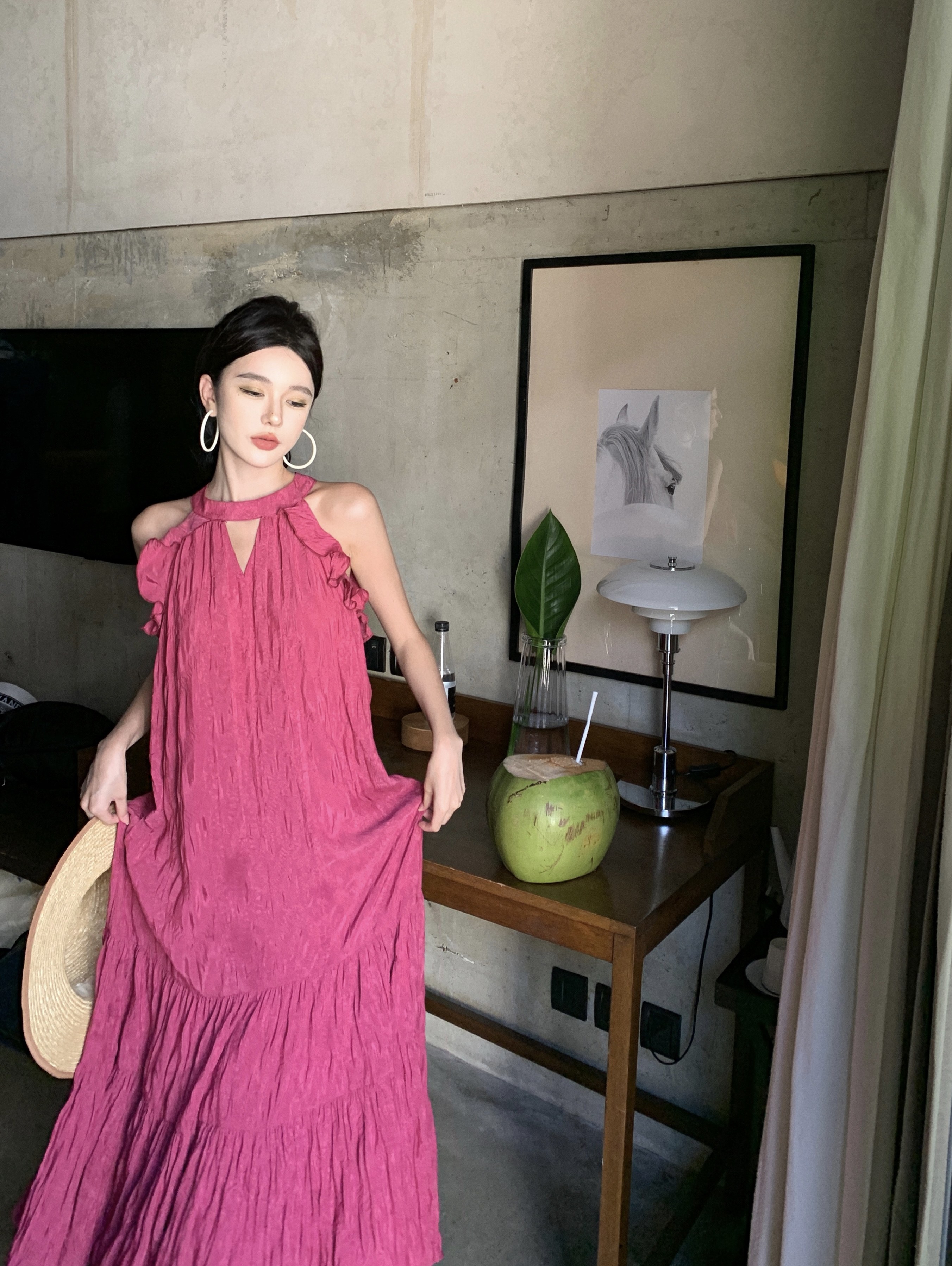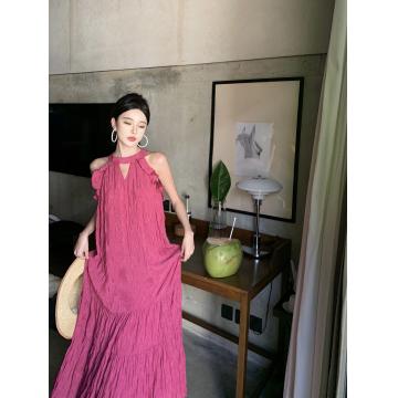 FA56864#度假风连衣裙女夏季新款中长款宽松显瘦挂脖吊带裙