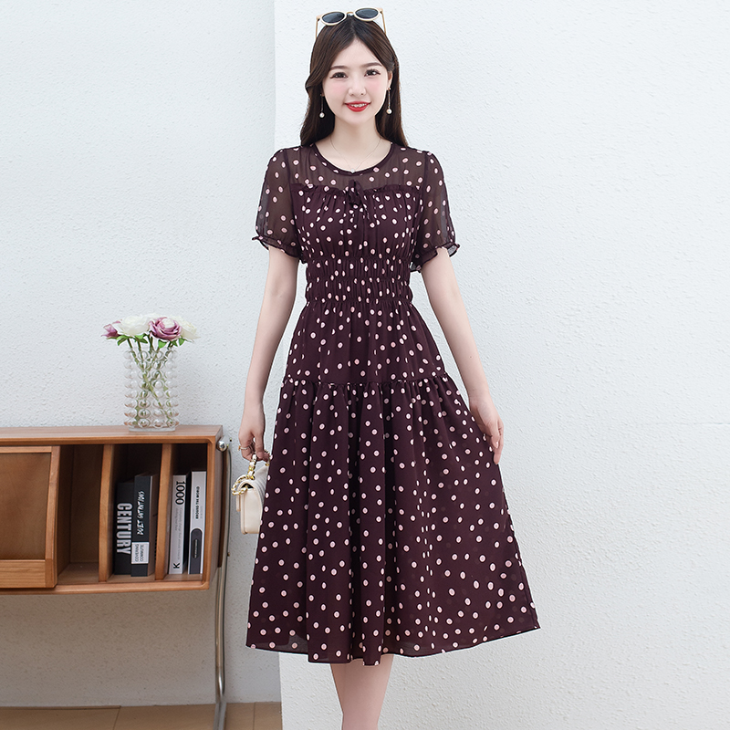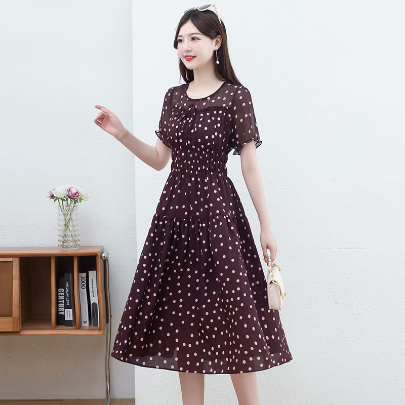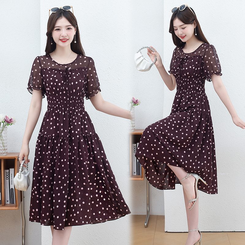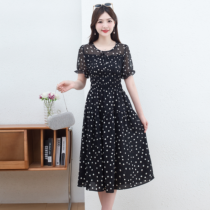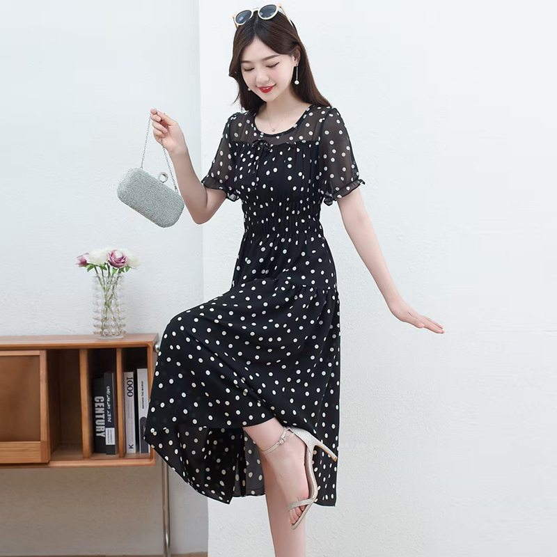 BY14318# 雪纺波点连衣裙女夏季新款气质名媛中长款时尚流行洋气裙子 服裝批發女裝批發服飾貨源