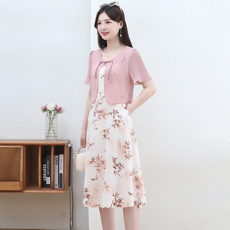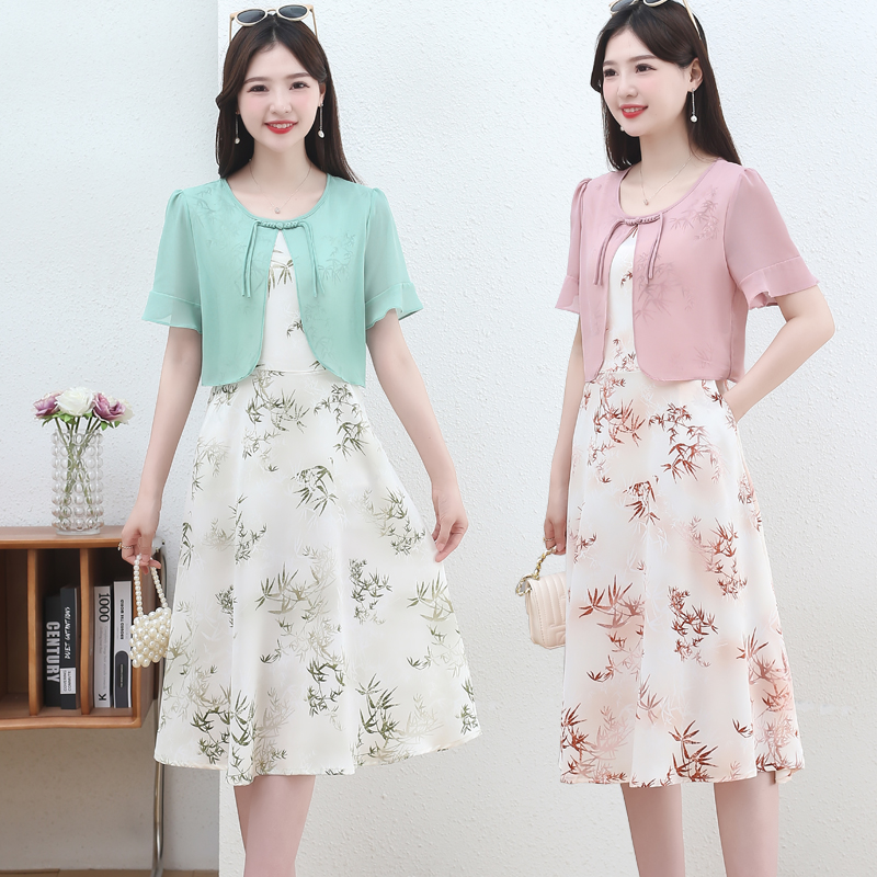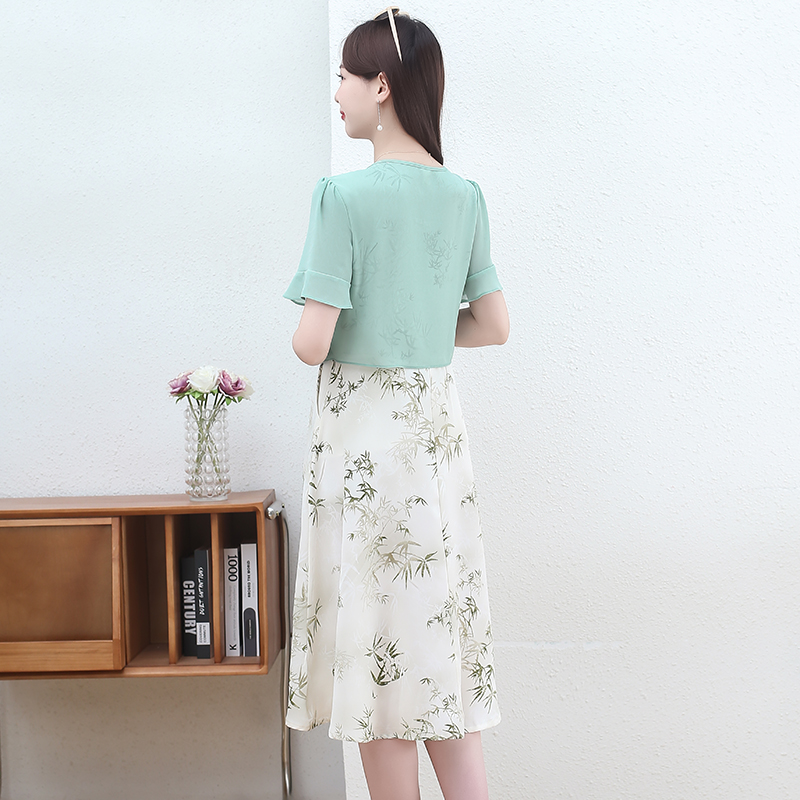 BY14327# 时尚拼接假两件套短袖连衣裙女夏装新款雪纺印花裙子 服裝批發女裝批發服飾貨源