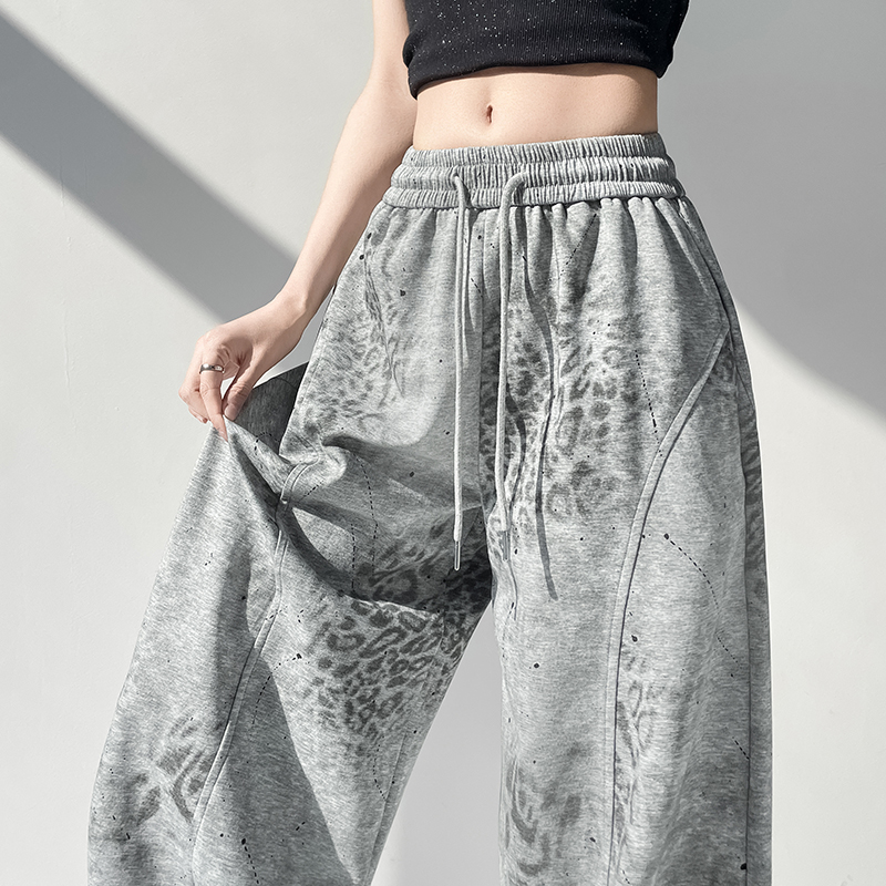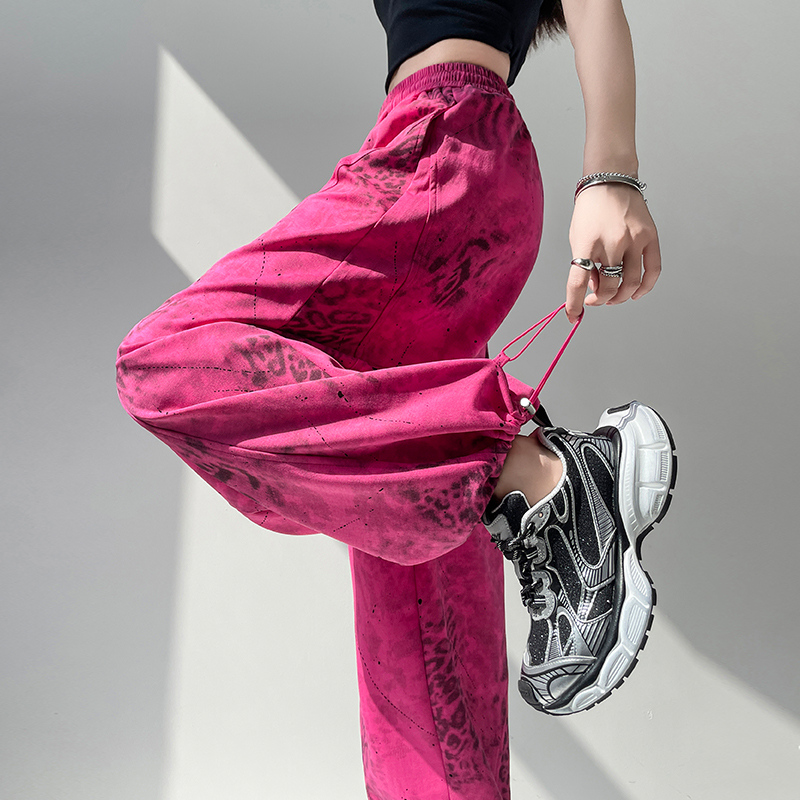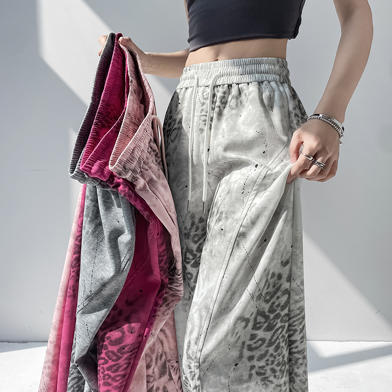 BY14331# 夏季新款休闲高腰显瘦百搭薄款两穿扎染印花弯刀裤长裤 服裝批發女裝批發服飾貨源