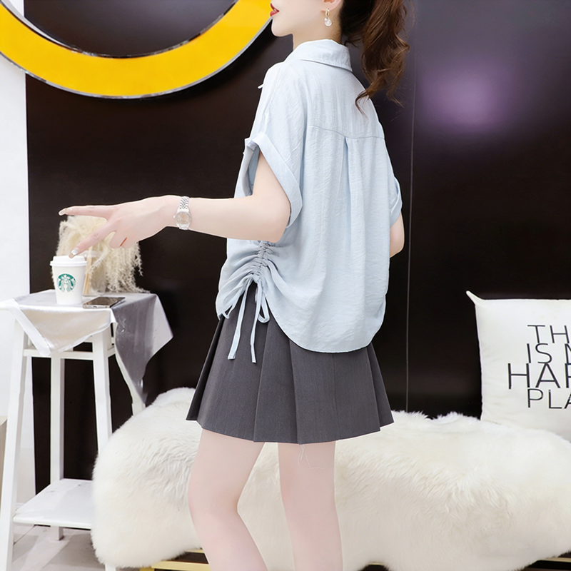 BY14536# 夏季薄款宽松系带短袖衬衫女外搭外套衬衣 服裝批發女裝批發服飾貨源