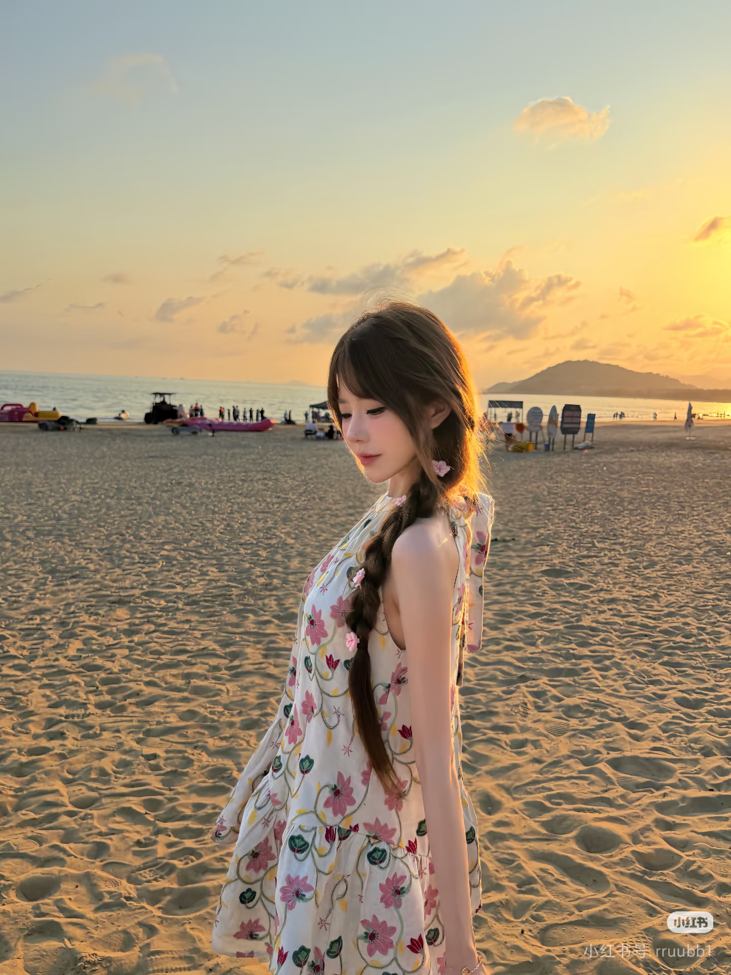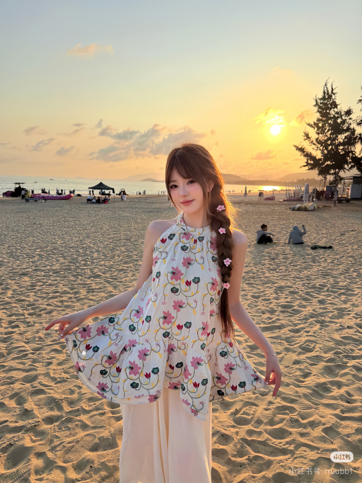 BY14601# 杏色圆领露肩刺绣碎花吊带背心女春季百搭挂脖上衣 服裝批發女裝批發服飾貨源