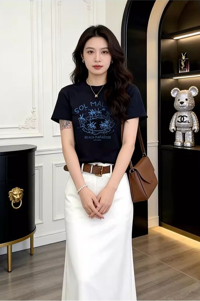 BY14629# 纯棉韩版辣妹正肩短袖T恤女修身印花上衣 服裝批發女裝批發服飾貨源
