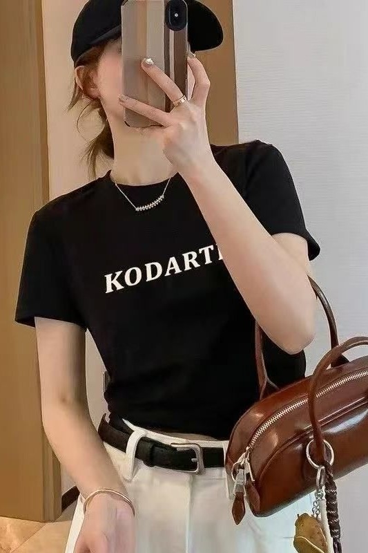 BY14630# 纯棉韩版新款正肩短袖T恤女印花辣妹上衣 服裝批發女裝批發服飾貨源
