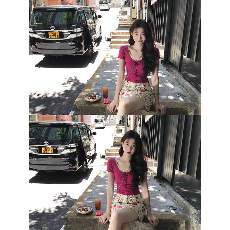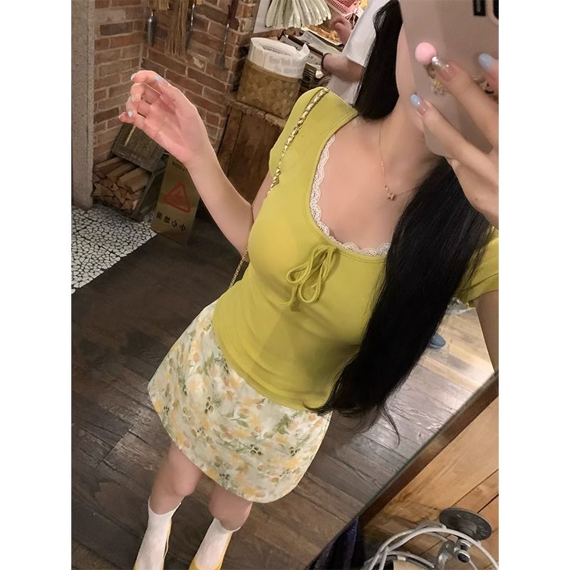 BY14632# 韩版辣妹气质短袖T恤女夏甜美减龄蕾丝边短款显瘦上衣 服裝批發女裝批發服飾貨源