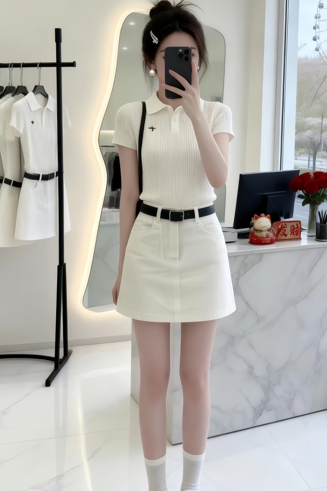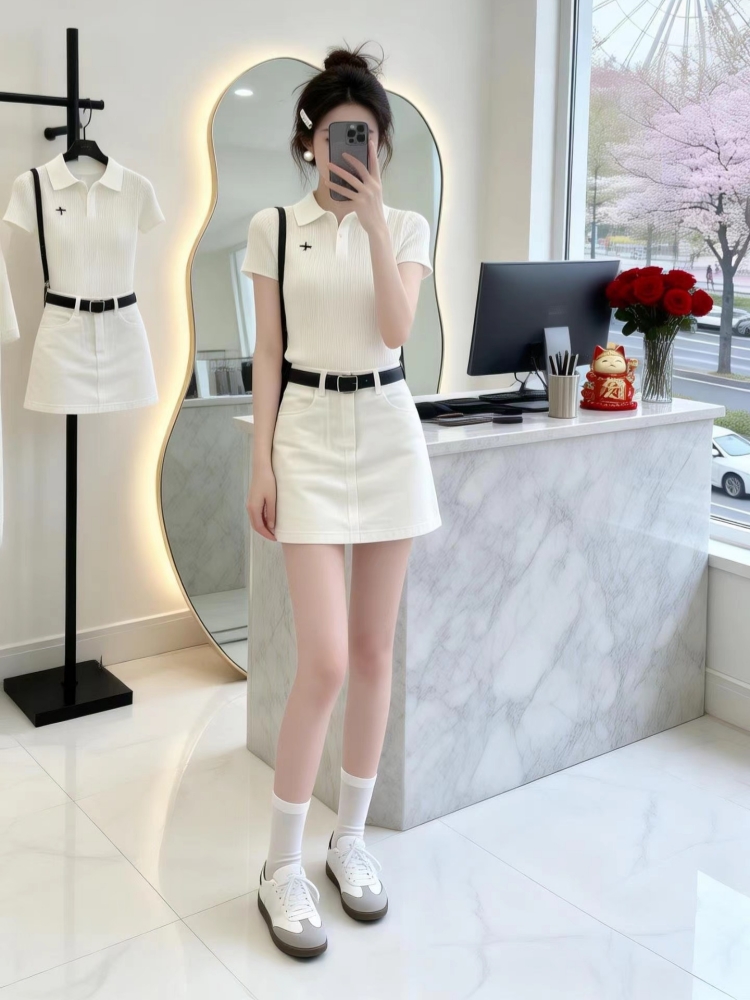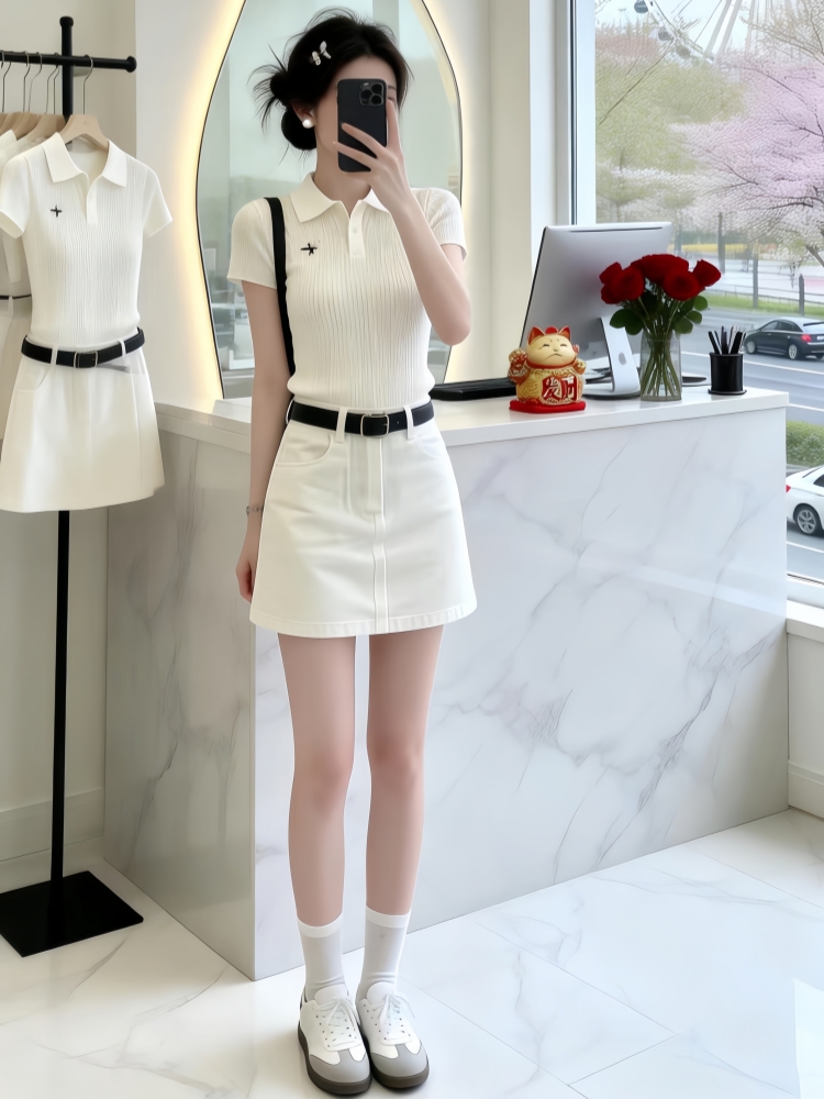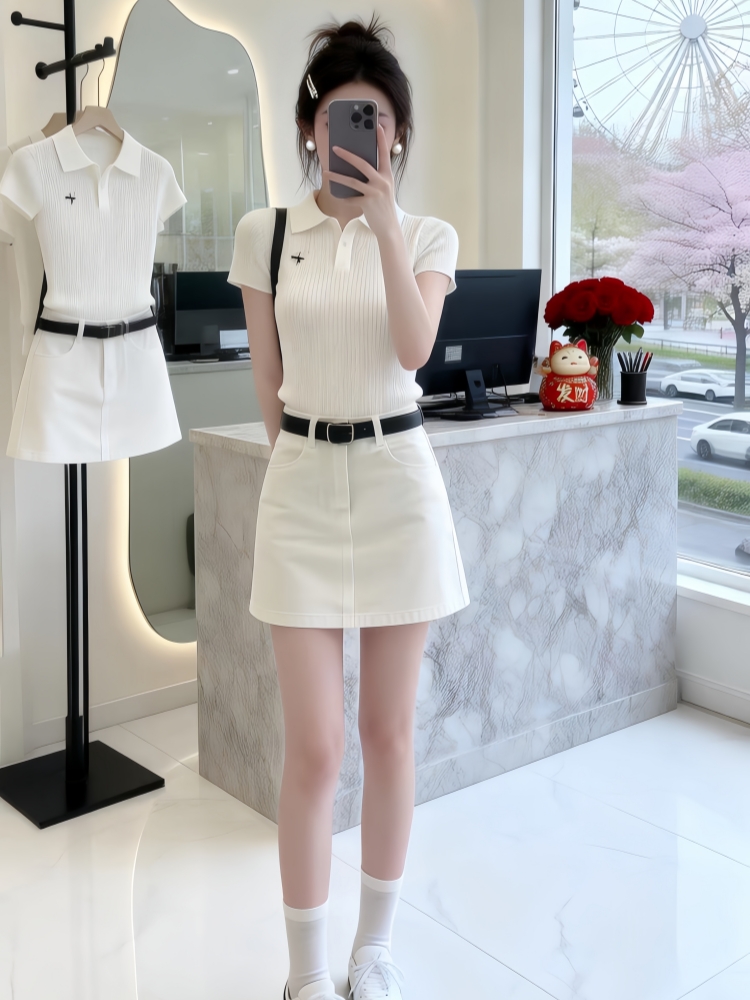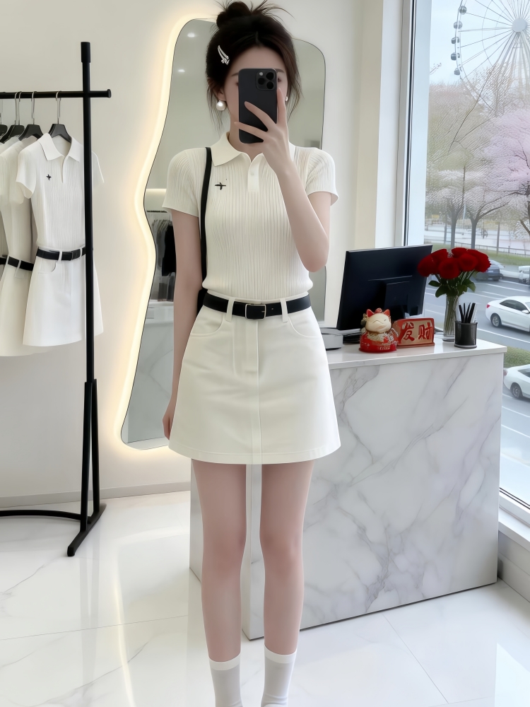 BY14749# 气质一整套ootd穿搭韩系夏季慵懒风针织短袖上衣短裙两件套装 服裝批發女裝批發服飾貨源