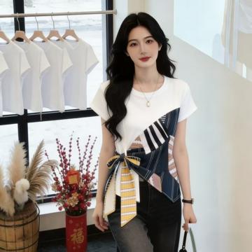 BY14799# 短袖t恤女夏季新款宽松显瘦遮肚子收腰设计感百搭打底上衣 服裝批發女裝批發服飾貨源