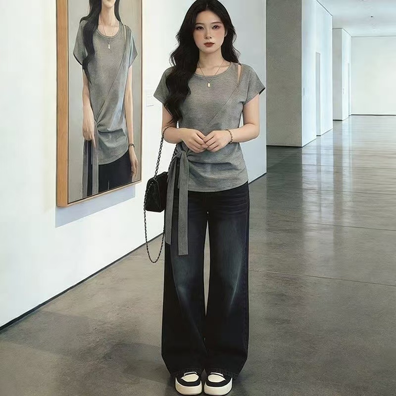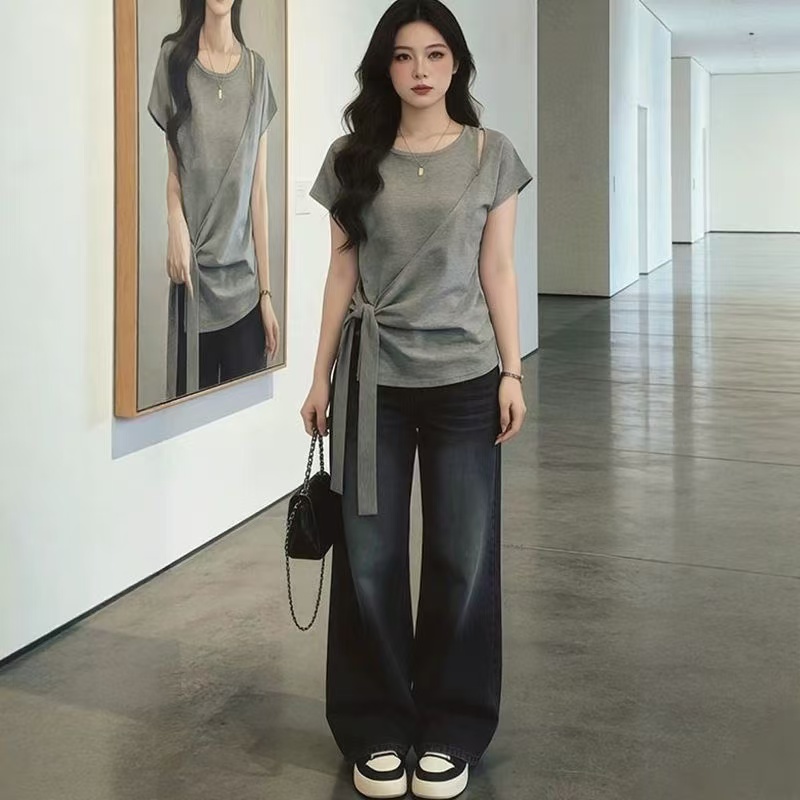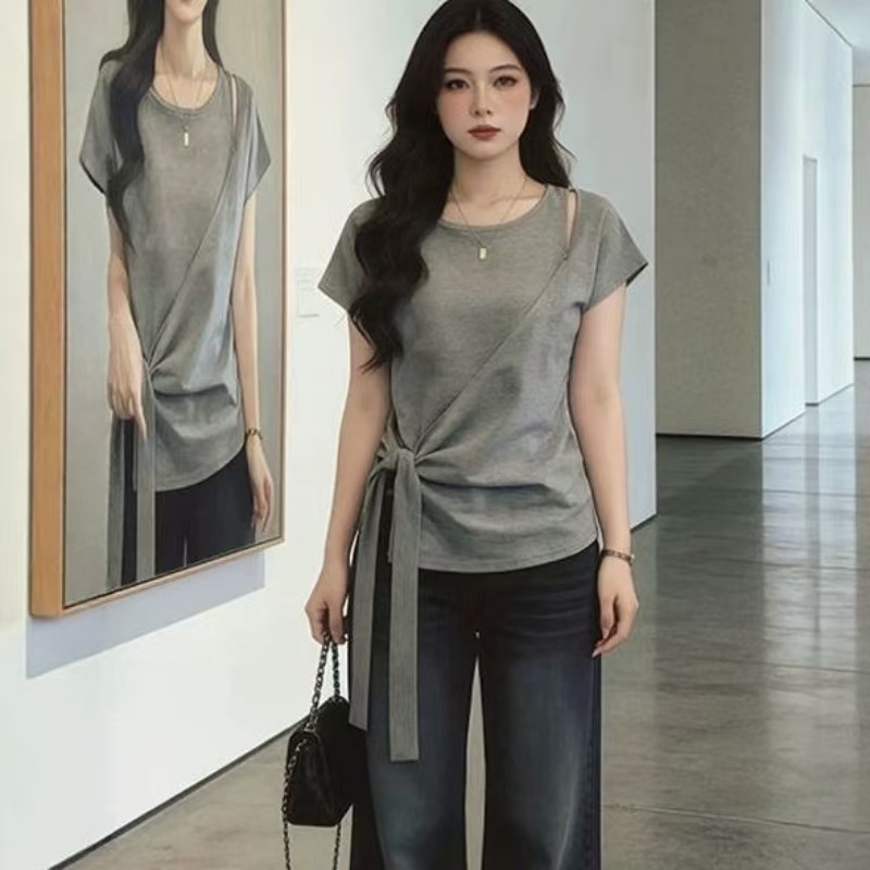 BY14801# 大码女装夏季新款绑带短袖T恤上衣 服裝批發女裝批發服飾貨源