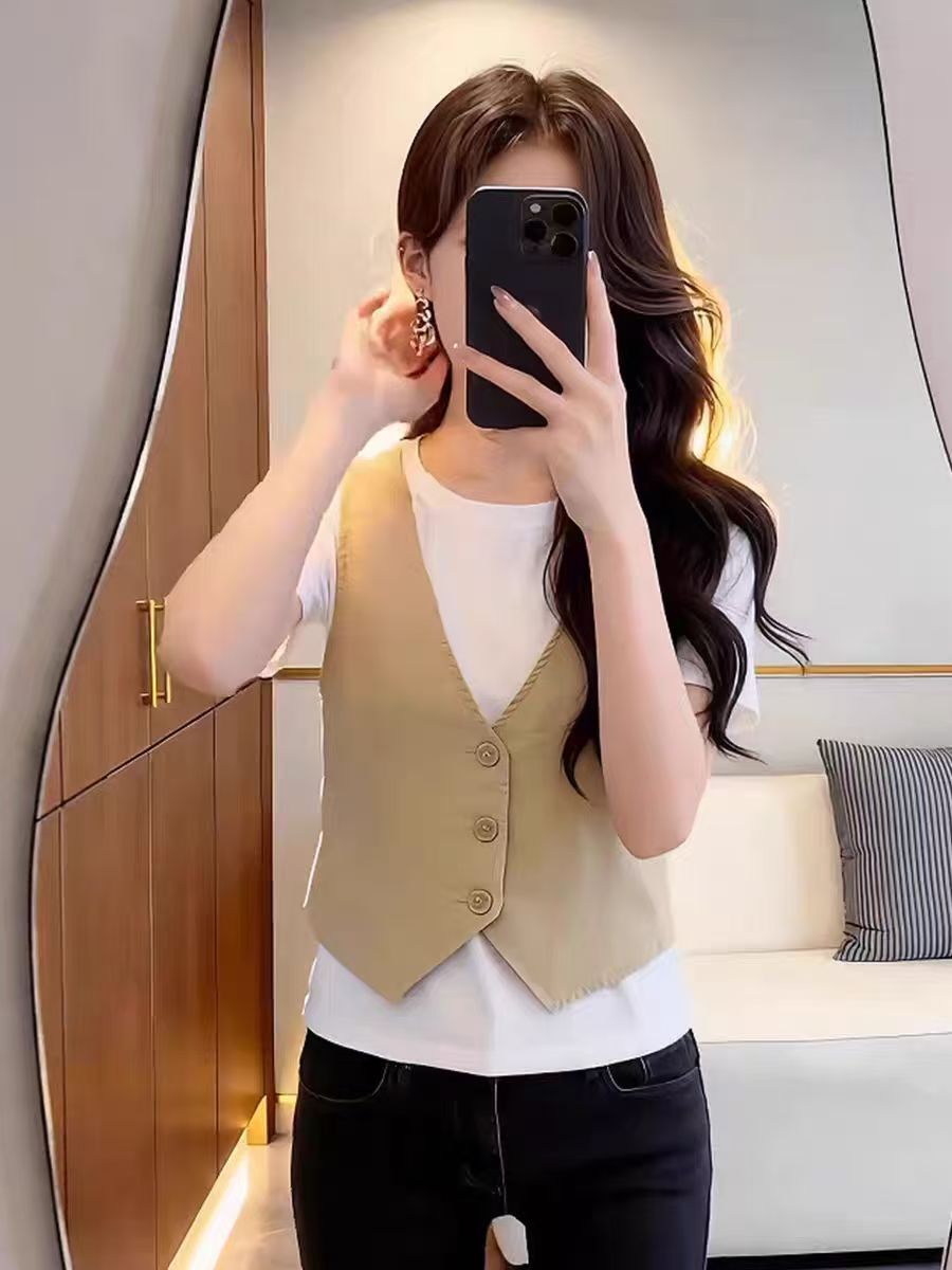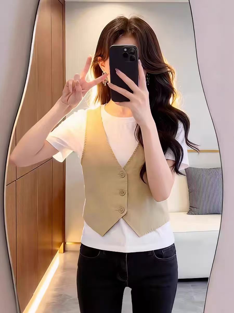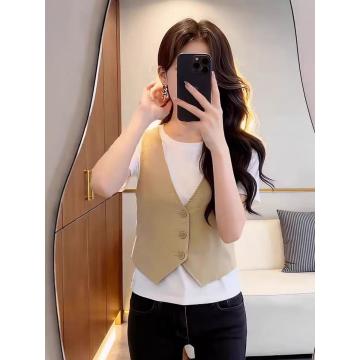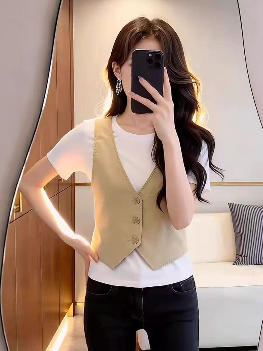 BY14806# 小众设计气质假两件短袖T恤女装夏季新款显瘦不规则正肩上衣 服裝批發女裝批發服飾貨源
