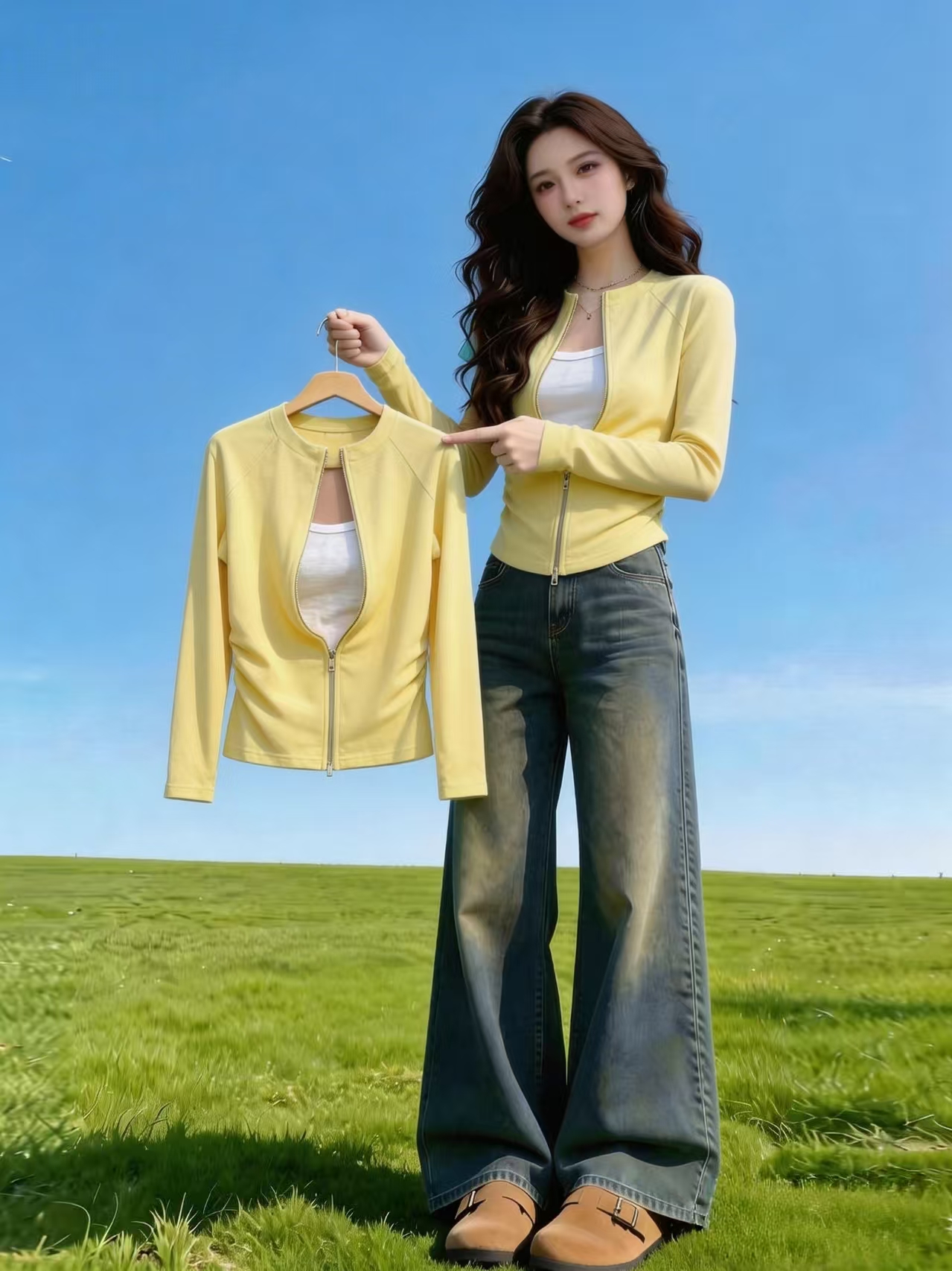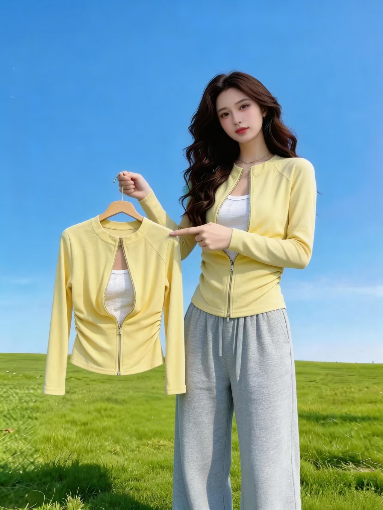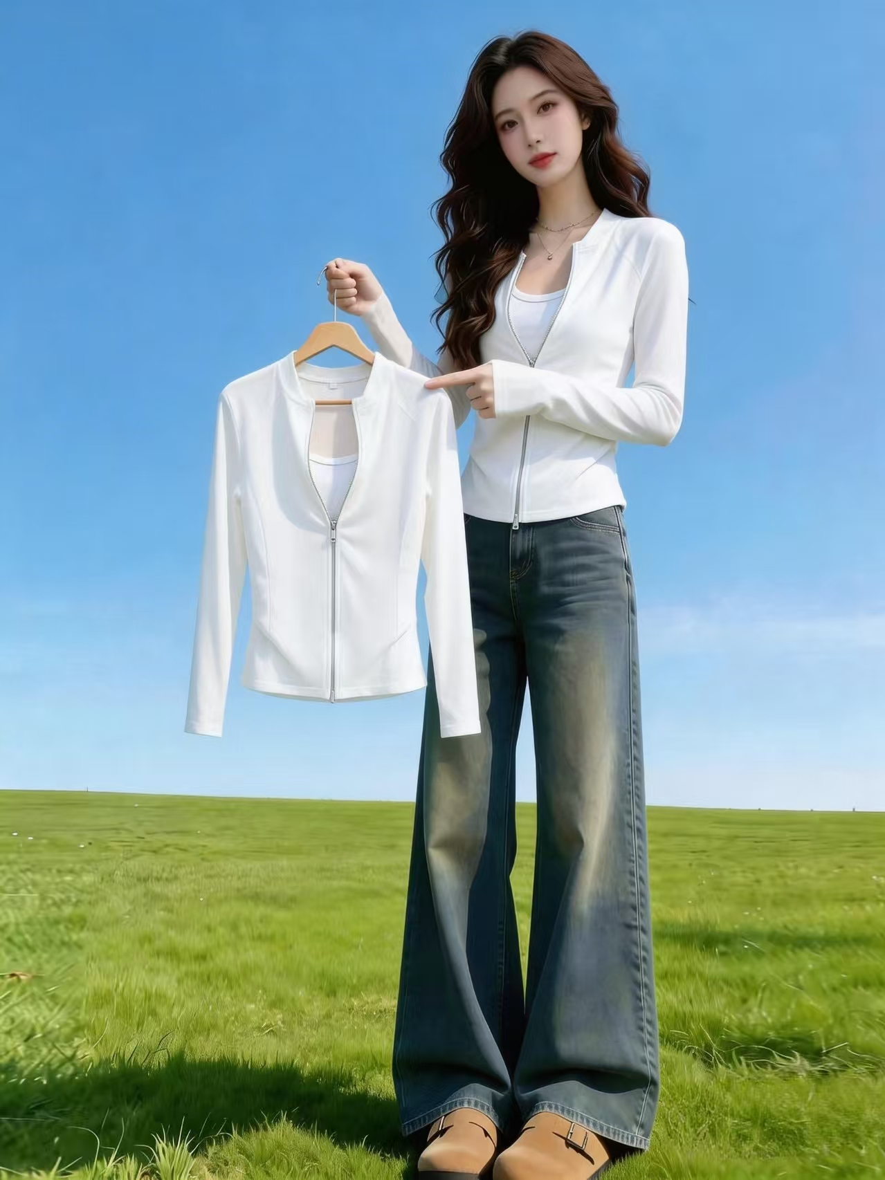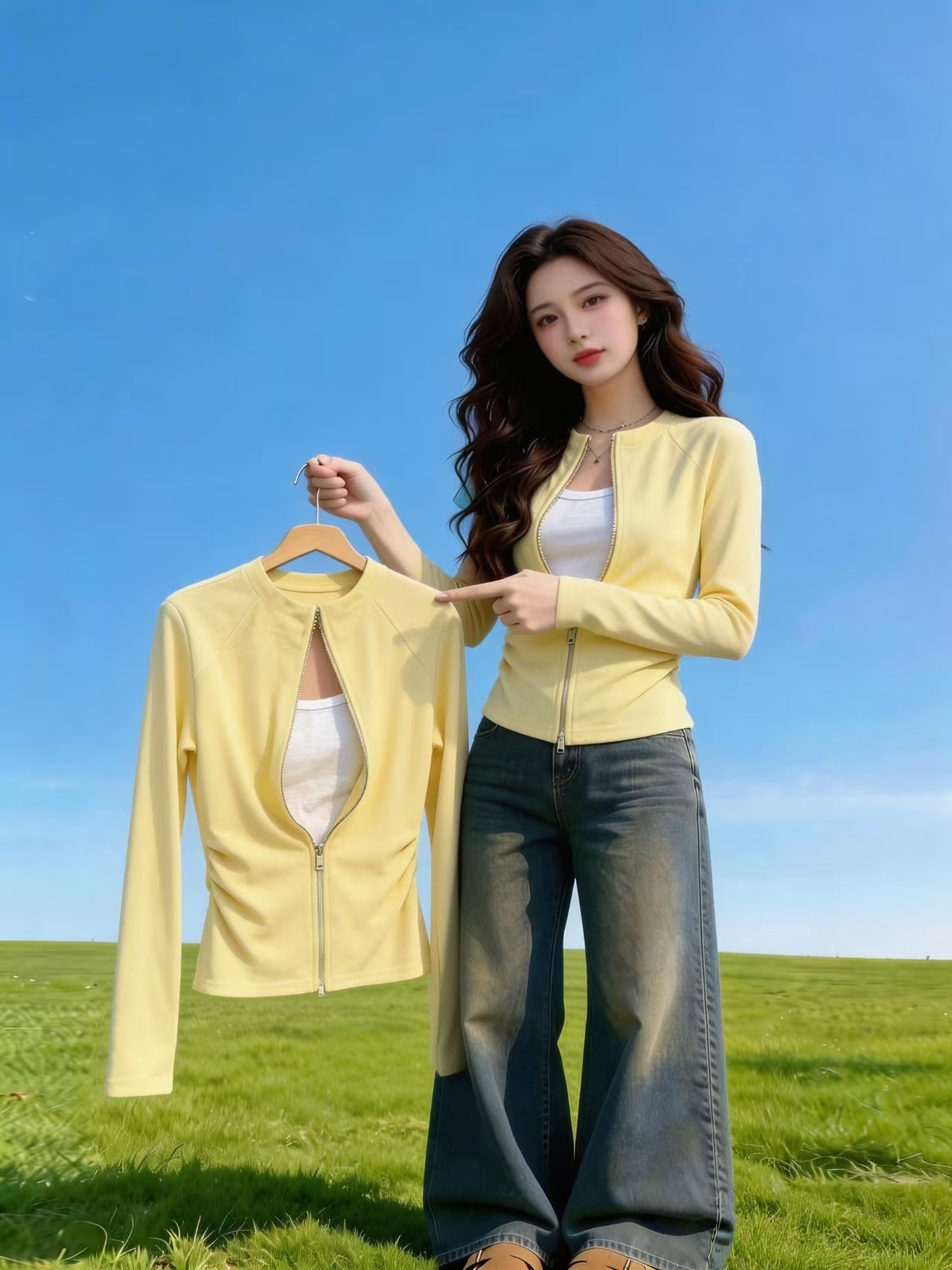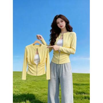 BY14807# 春夏新款韩版洋气时尚百搭纯色假两件显瘦拉链防晒上衣 服裝批發女裝批發服飾貨源