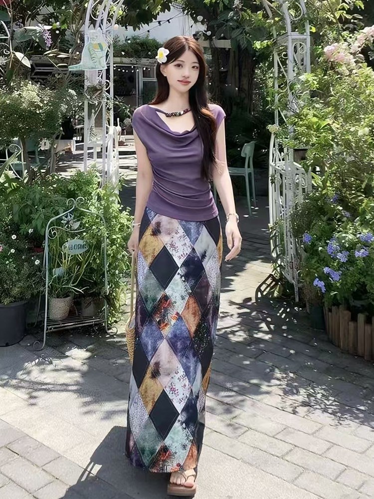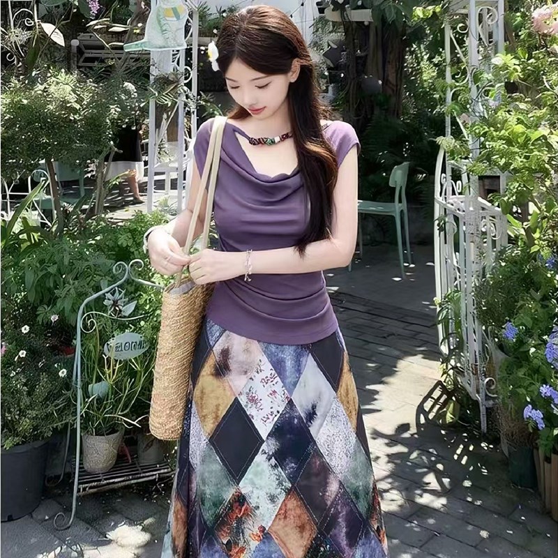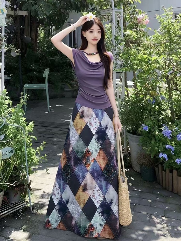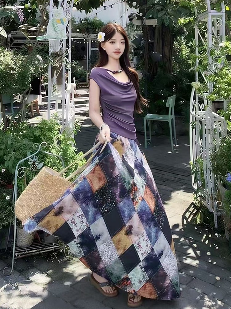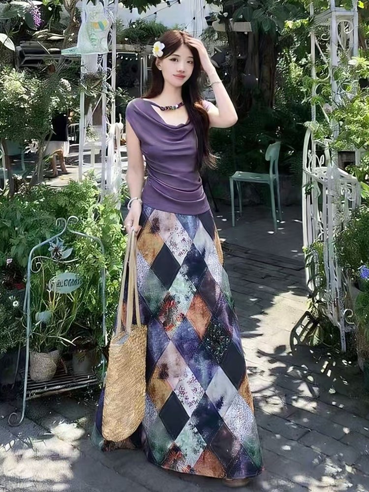 BY14821# 夏季新款大码法式成熟优雅气质感度假风显瘦上下套长裙两件套 服裝批發女裝批發服飾貨源