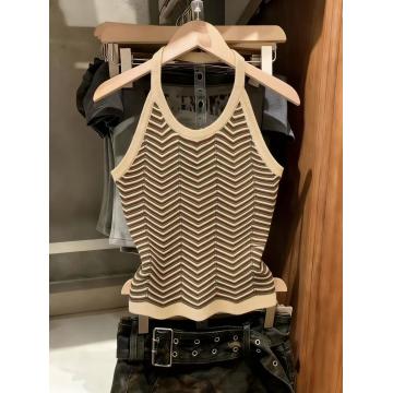 BY14855# 纯欲条纹针织吊带背心女超火ins甜辣妹打底上衣chic 服裝批發女裝批發服飾貨源