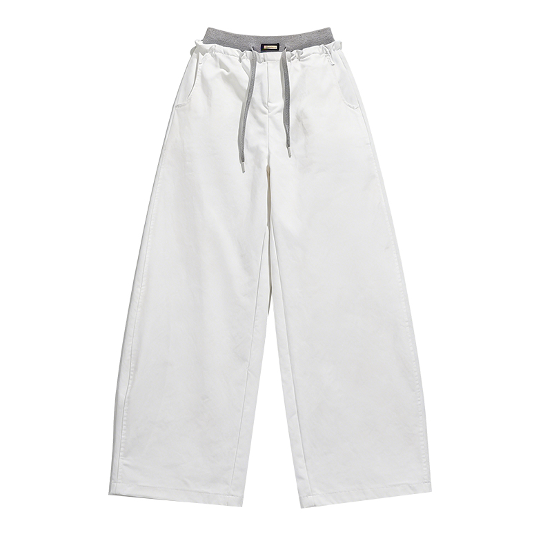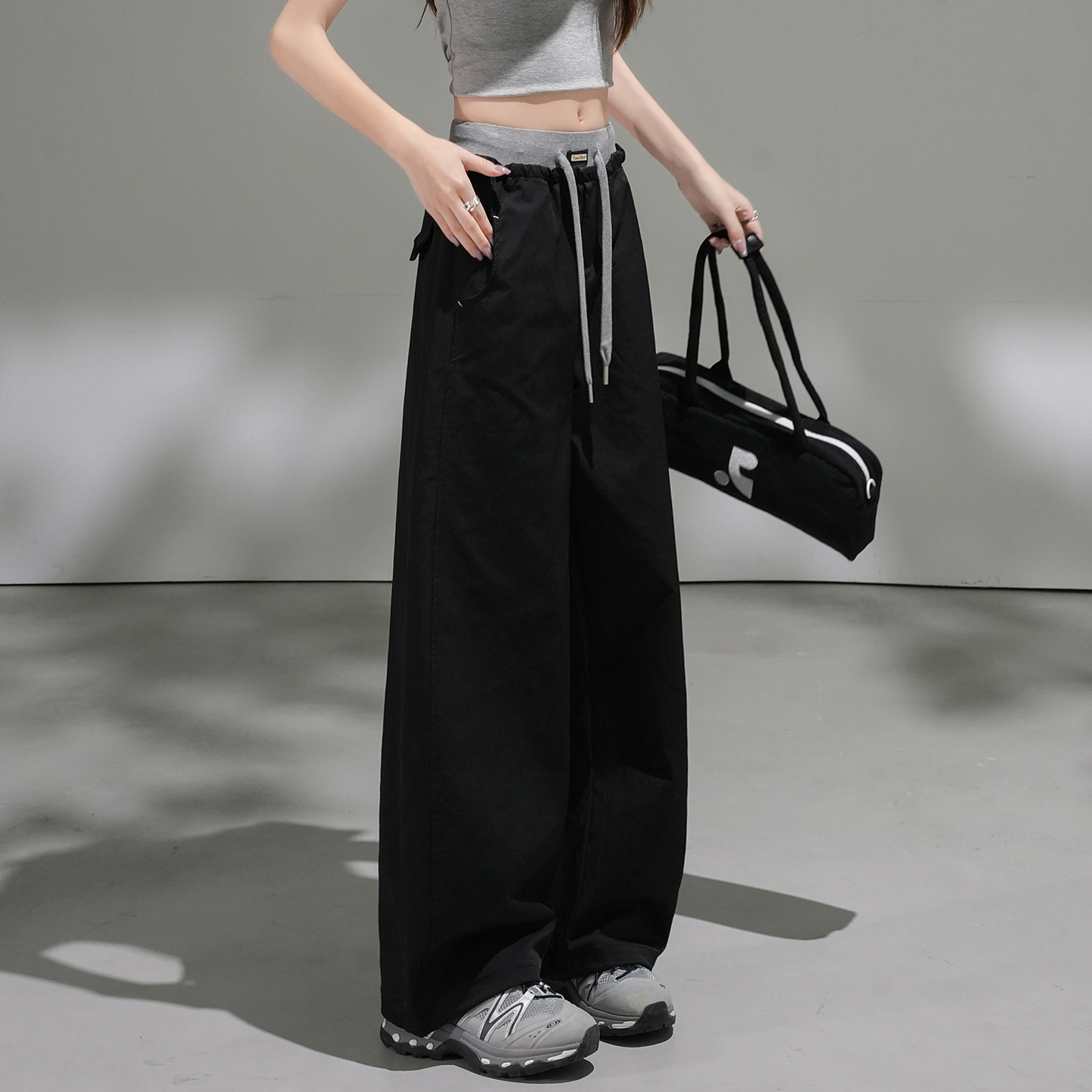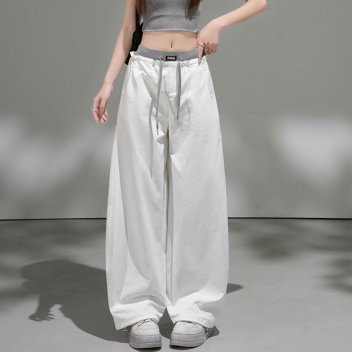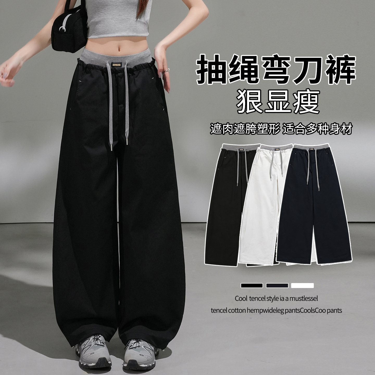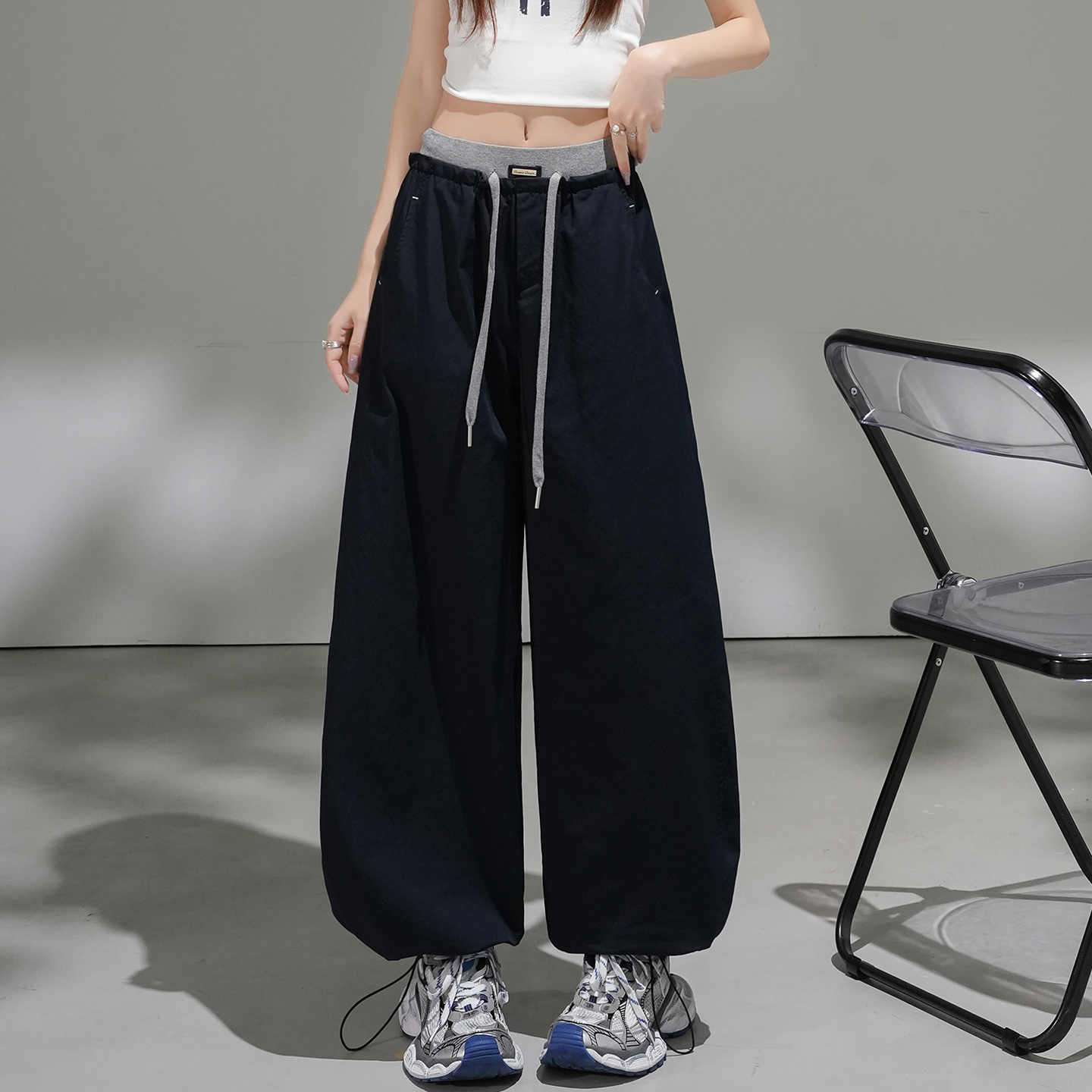 BY14972# 夏松紧腰撞色抽绳百搭宽松阔腿束脚两穿休闲工装运动裤 服裝批發女裝批發服飾貨源