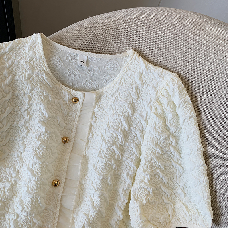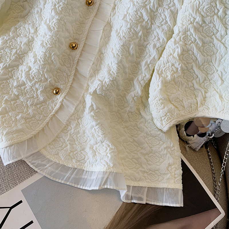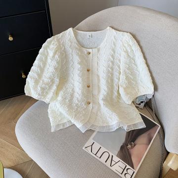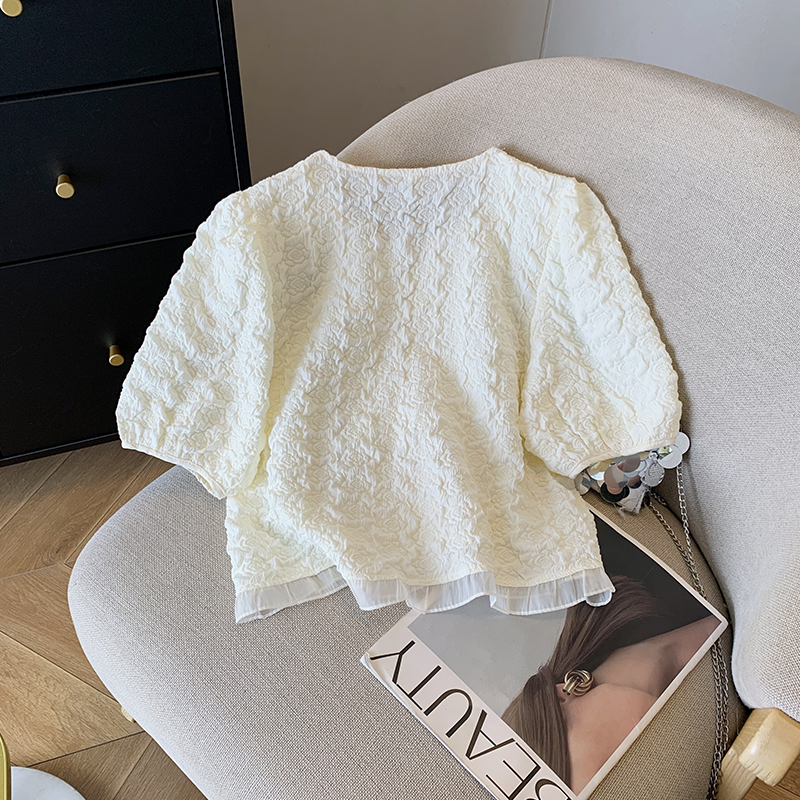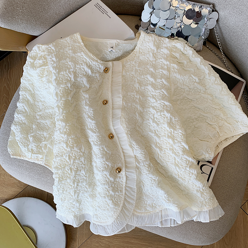 BY14992# 夏季新款设计感小香风花边衬衣泡泡袖雪纺衫上衣女 服裝批發女裝批發服飾貨源