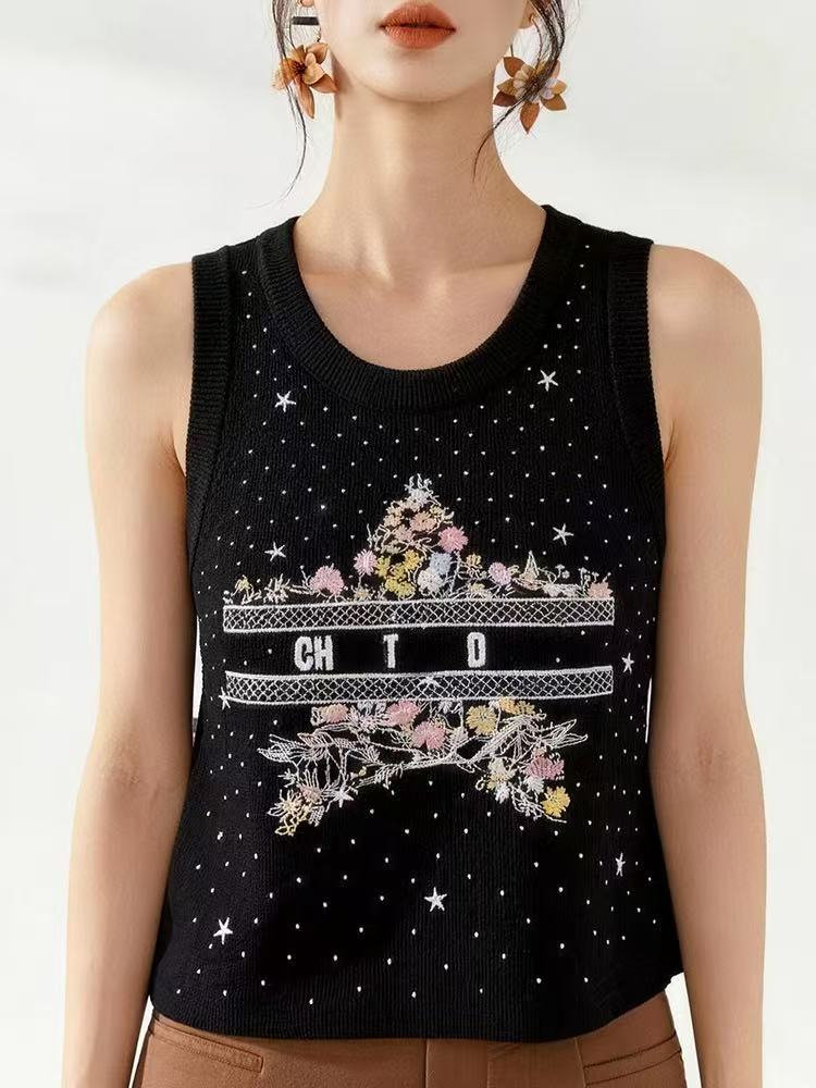 BY15031# 韩系设计感刺绣叠穿针织背心春季新款大码时尚百搭显瘦上衣 服裝批發女裝批發服飾貨源