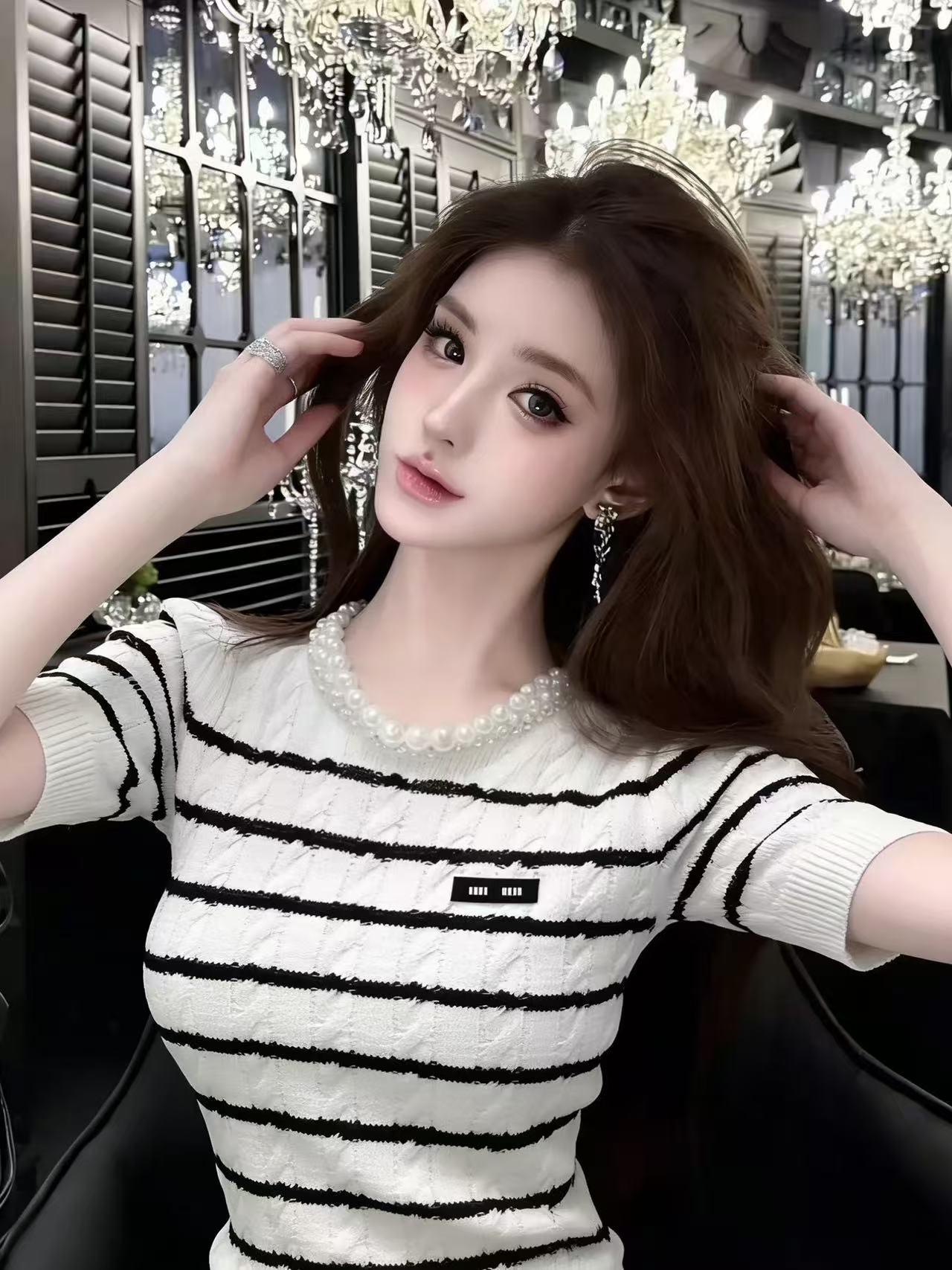 BY15034# LIHEYU韩版温柔风撞色条纹针织衫女夏季短袖圆领修身气质上衣 服裝批發女裝批發服飾貨源