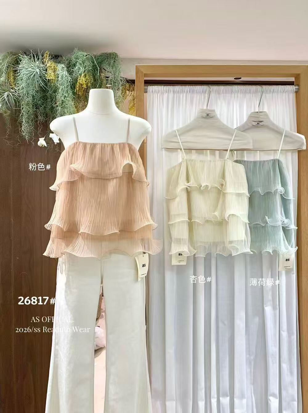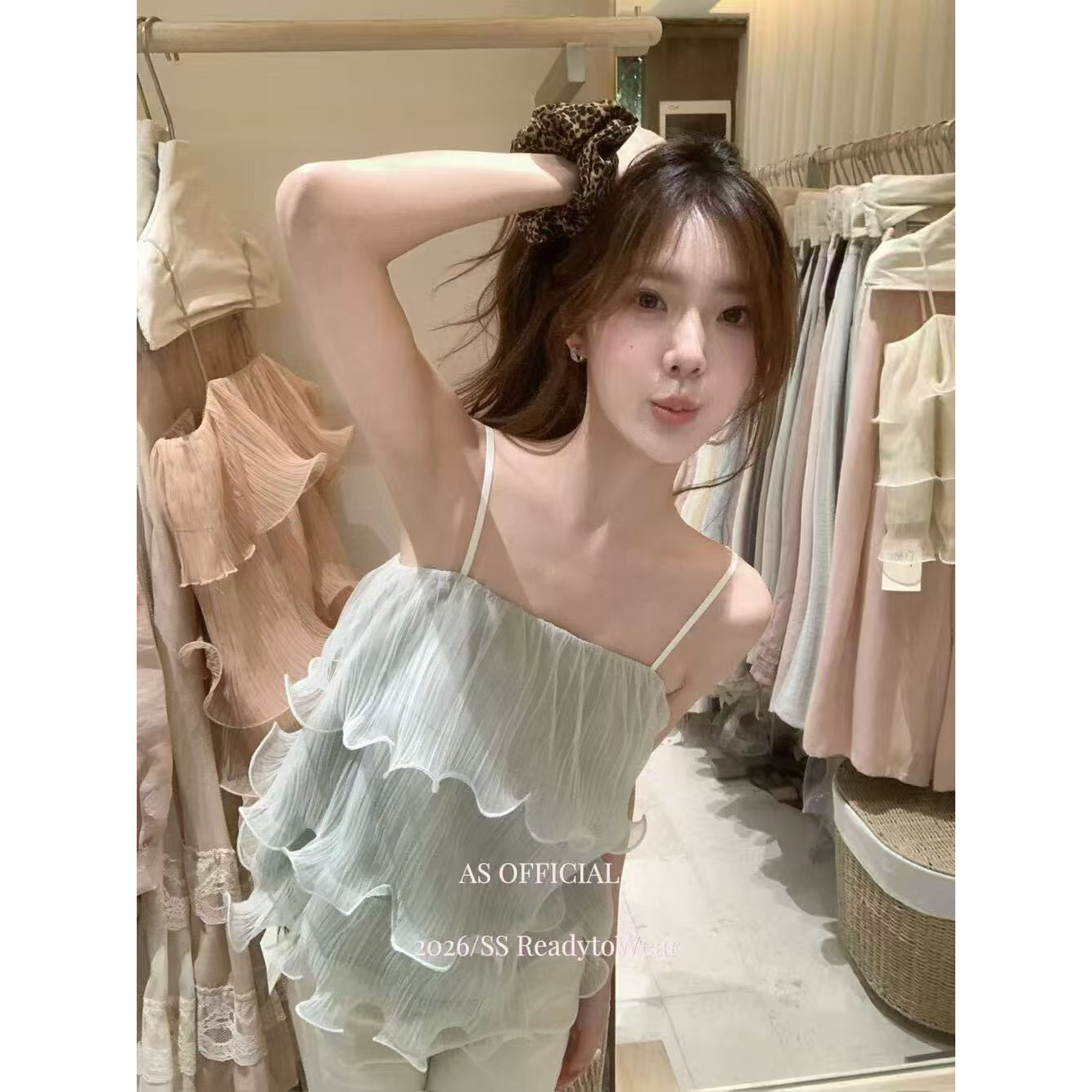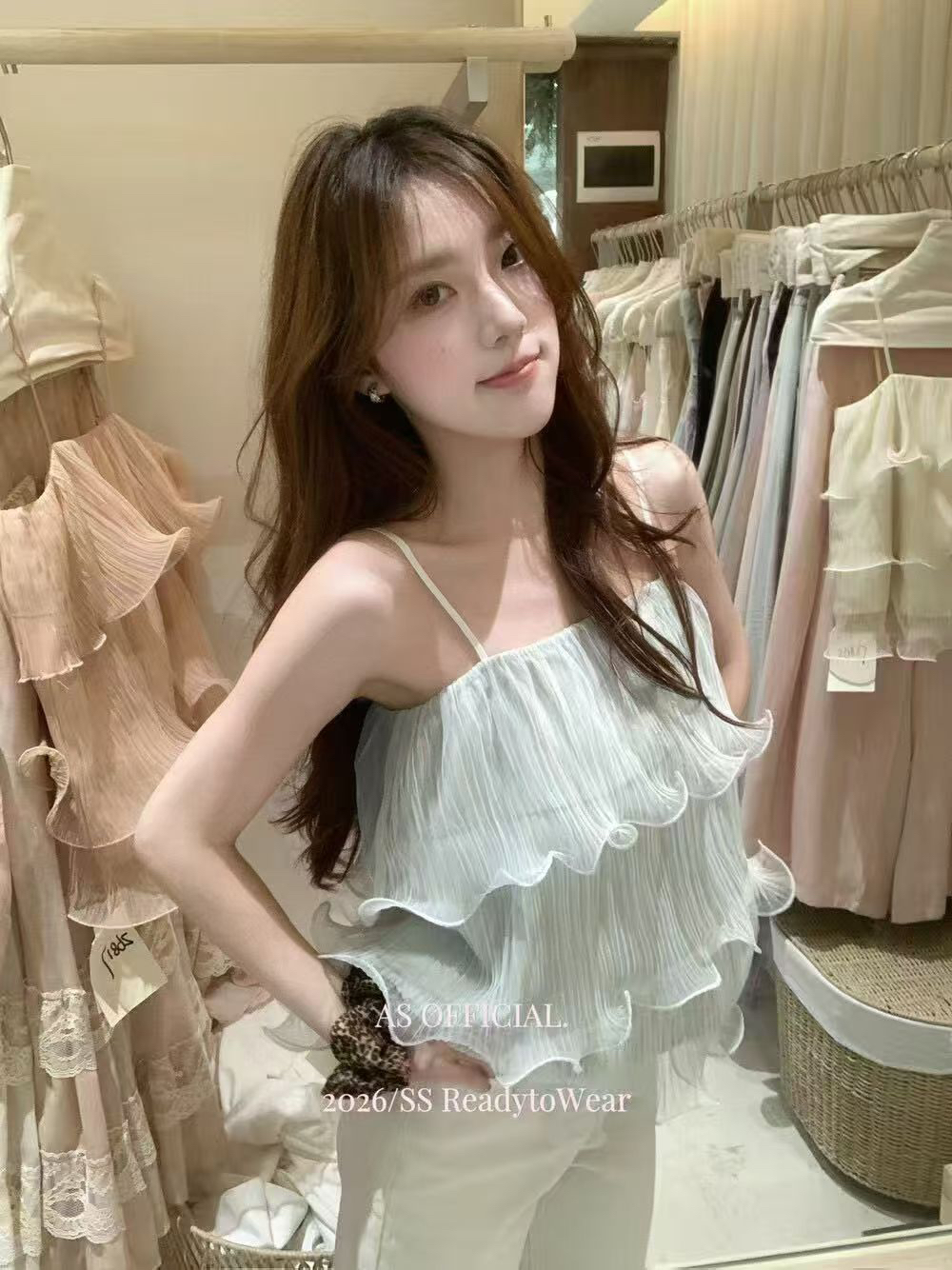 BY15087# 十三行春夏新款氛围香香软软层层荷叶边吊带小衫 服裝批發女裝批發服飾貨源