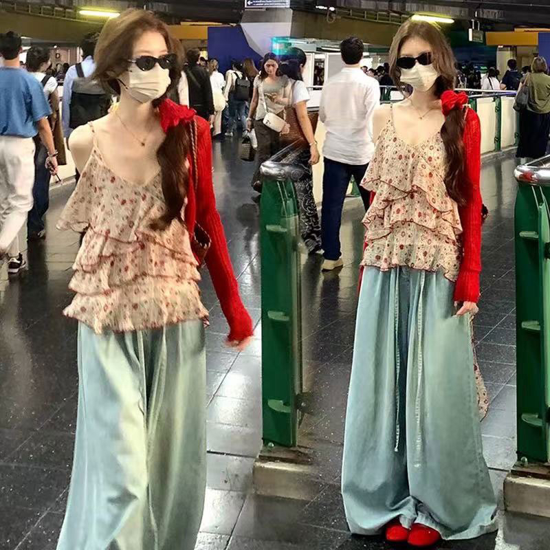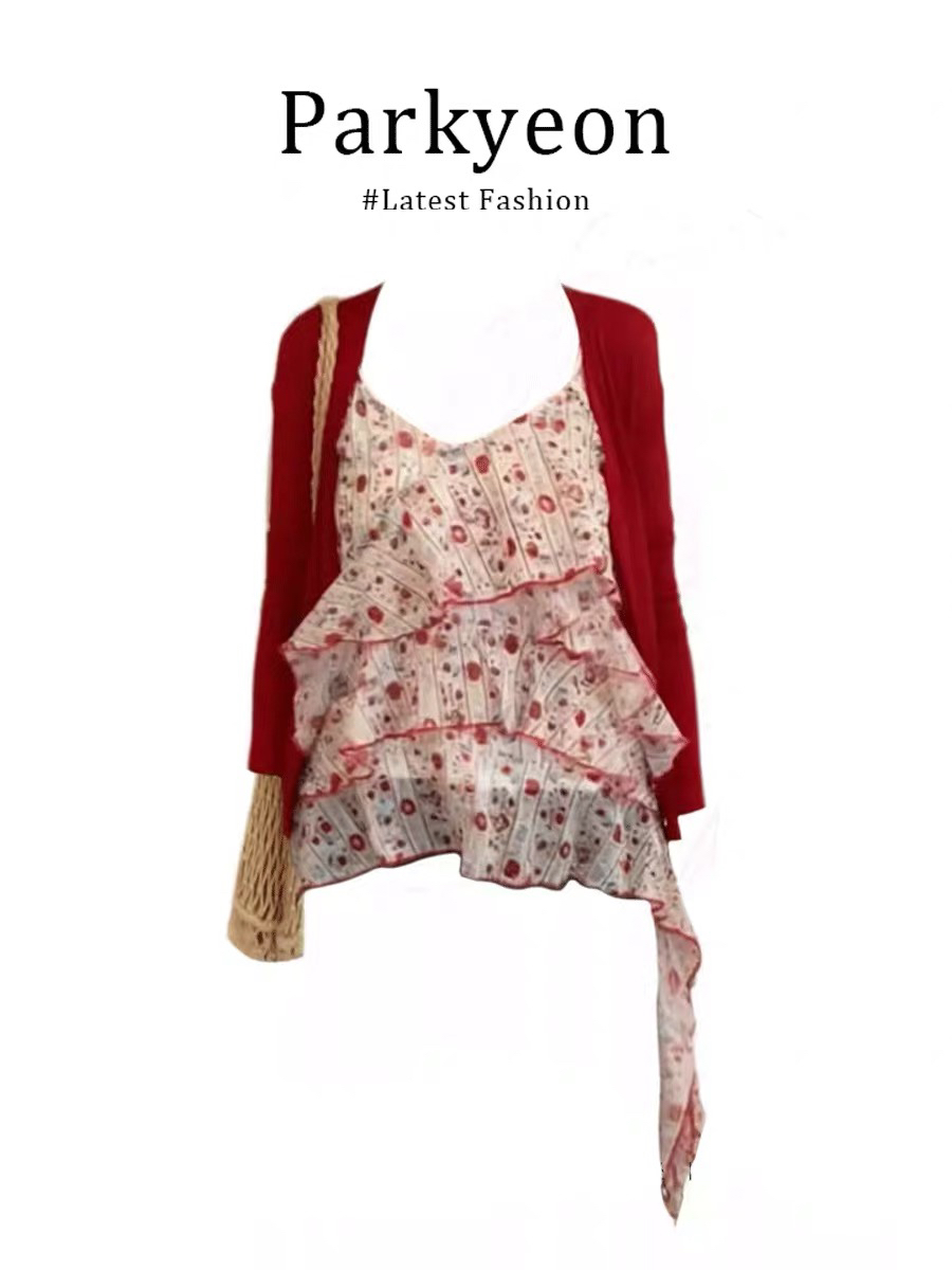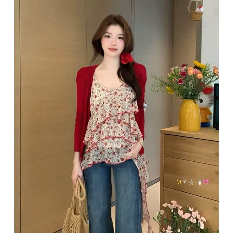 BY15090# 莓果奶冻夏季新款雪纺红碎花小吊带女无袖套头打底衫上衣 服裝批發女裝批發服飾貨源