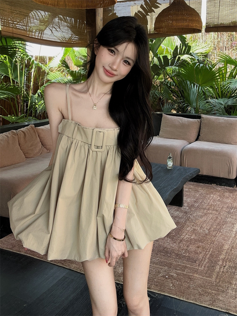 BY15092# 设计感卡其色吊带花苞宽松吊带衬衫上衣 服裝批發女裝批發服飾貨源
