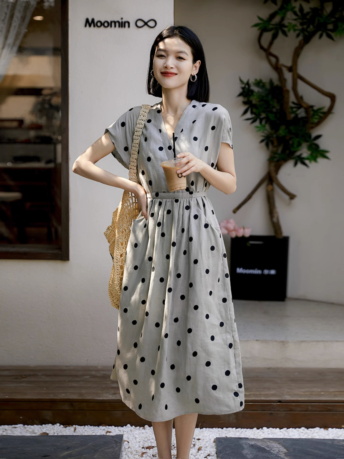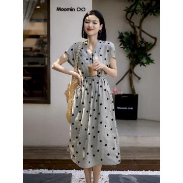 BY15187# 斑驳艺术复古刺绣波点大体量轻盈感亚麻连衣裙服裝批發女裝批發服飾貨源