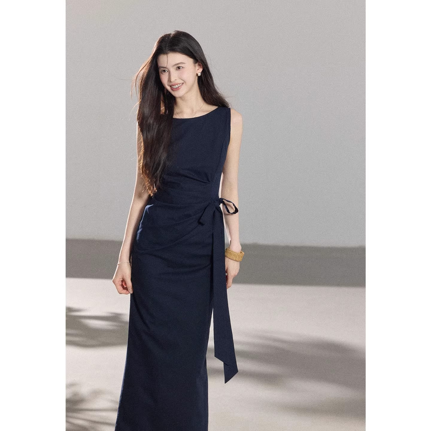 BY15188# 高级感气质收腰系带连衣裙女通勤百搭背心裙服裝批發女裝批發服飾貨源