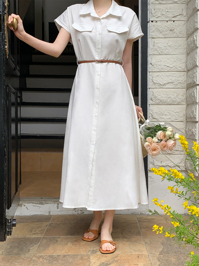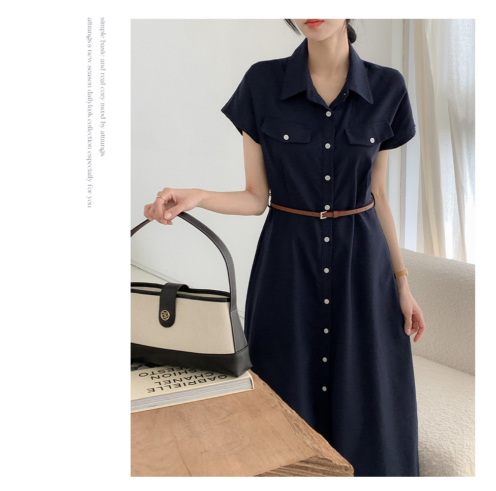 BY15216# 韩国chic法式气质翻领复古连衣裙配腰带服裝批發女裝批發服飾貨源