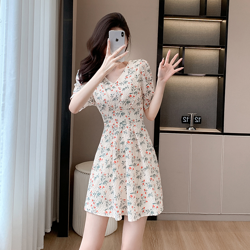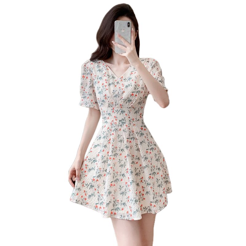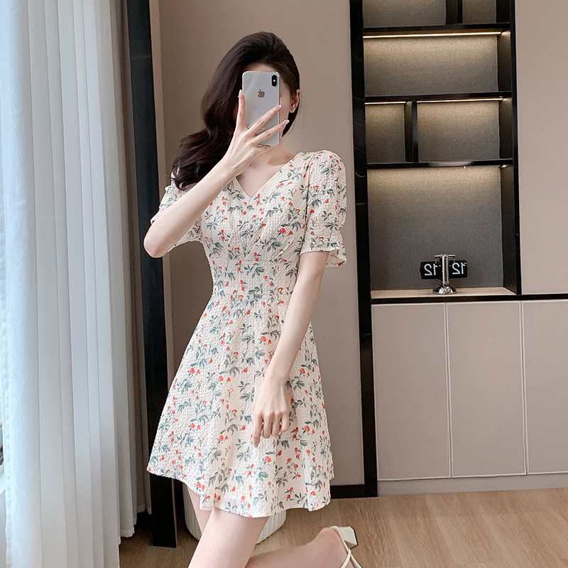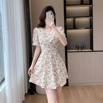 BY15267# 雪纺碎花小个子连衣裙新款女夏高腰气质漂亮时尚温柔连衣裙女服裝批發女裝批發服飾貨源