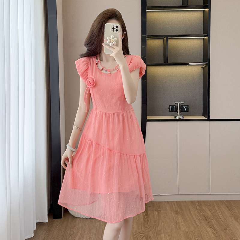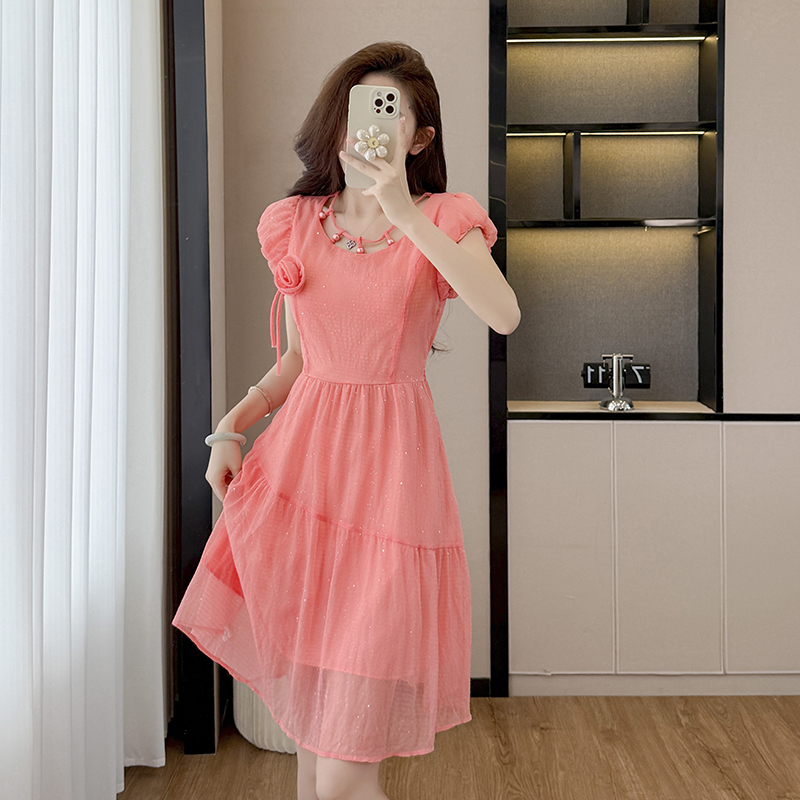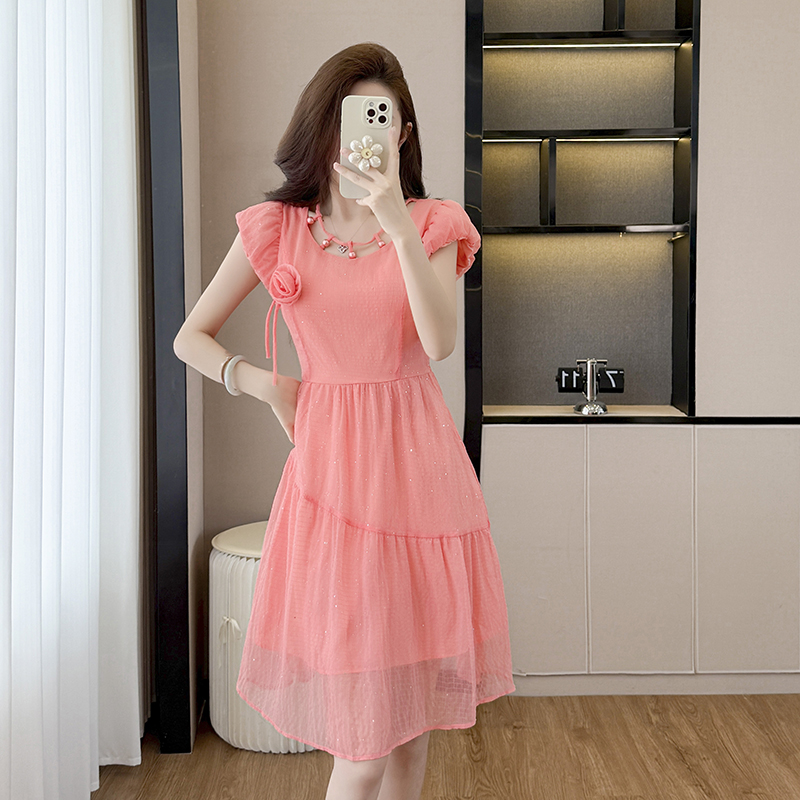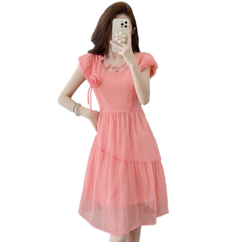 BY15272# 夏季别致绝美粉色超仙连衣裙女新款立体花朵气质减龄显瘦裙子服裝批發女裝批發服飾貨源