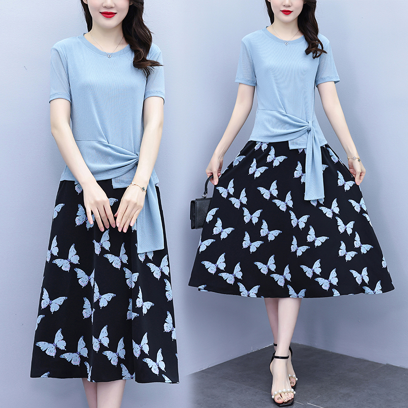 BY15284# 洋气夏装短袖套装连衣裙女装时尚t恤小衫半身裙两件套服裝批發女裝批發服飾貨源
