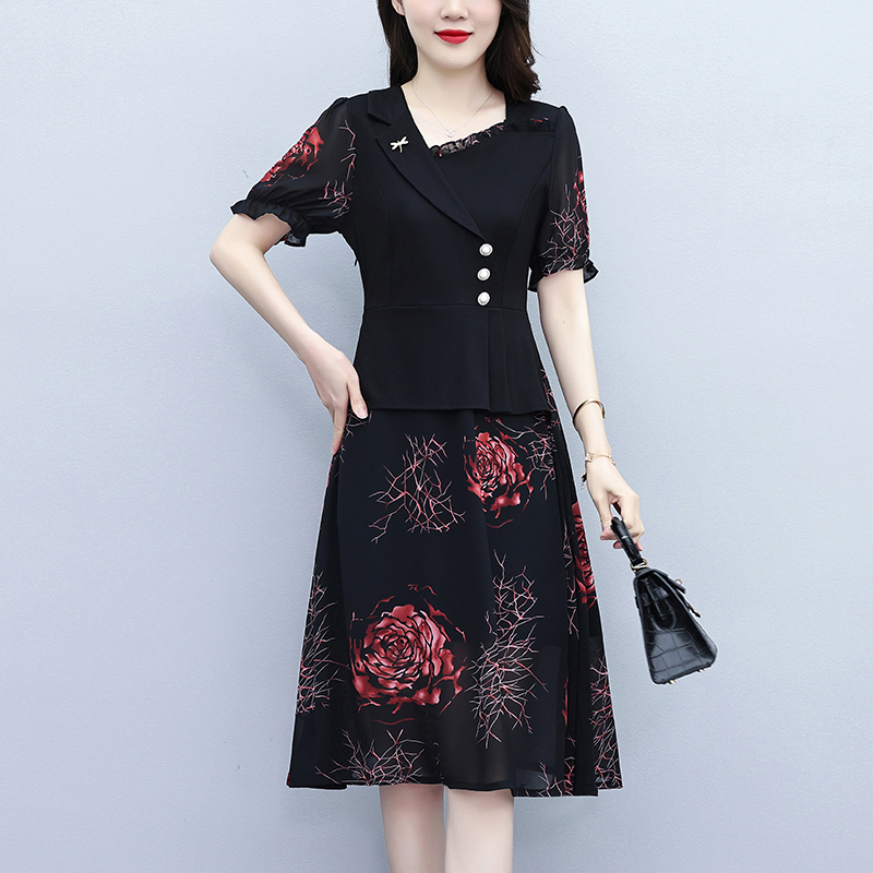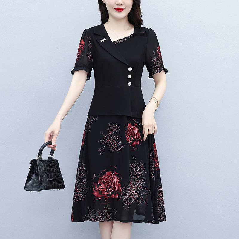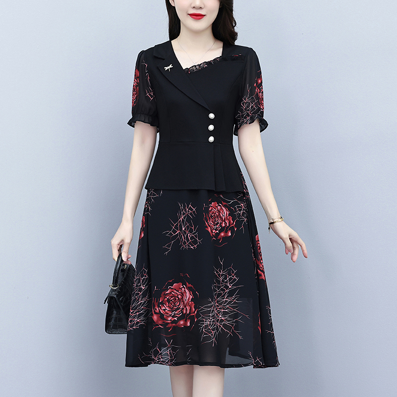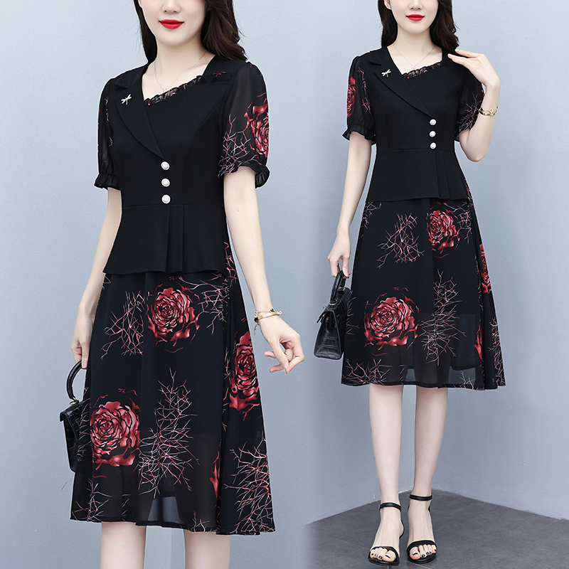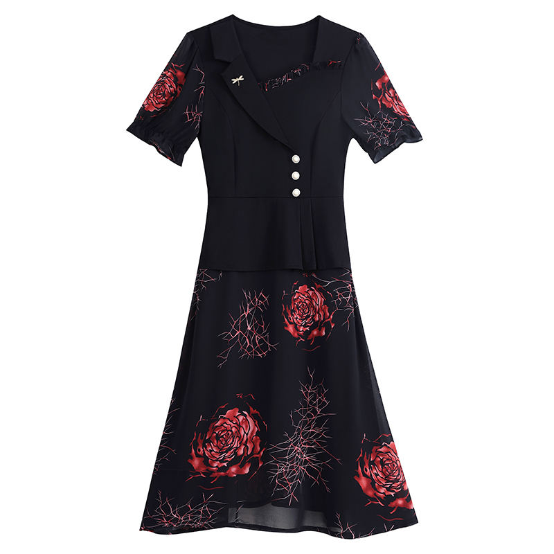 Home > 短袖连衣裙、夜店装 > BY15292# 夏季新款胖mm西装领雪纺碎花拼接时尚遮肚气质连衣裙服裝批發女裝批發服飾貨源
