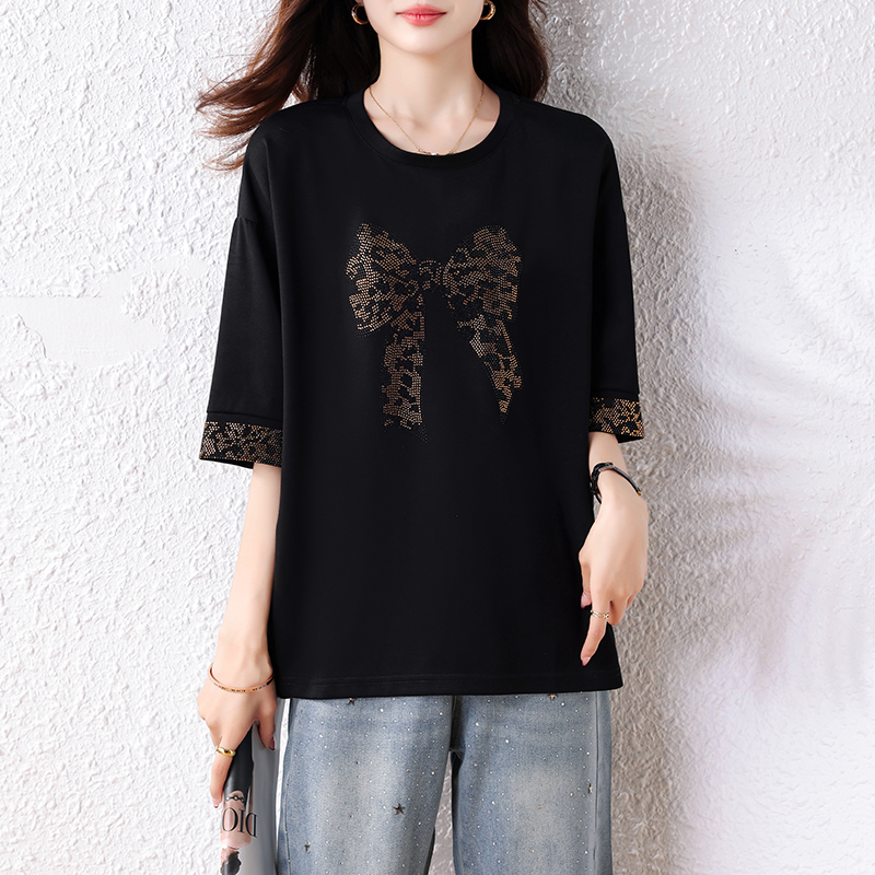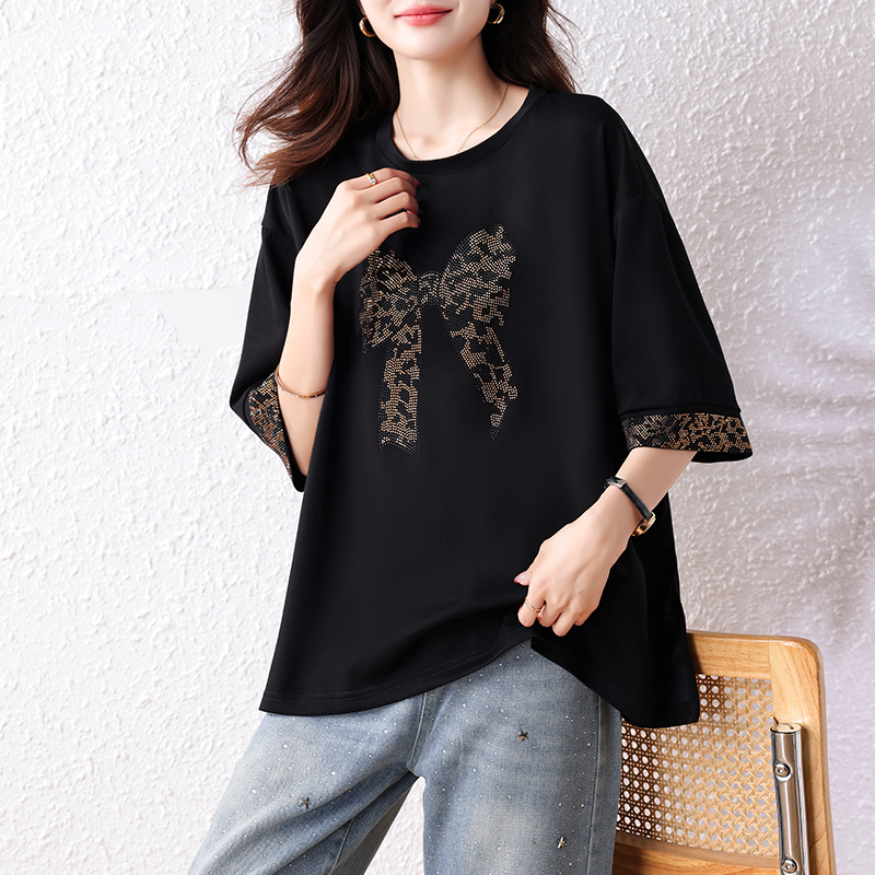 Home > 短袖T恤 > BY15313# 夏装新款时尚简约宽松型胖MM洋气T恤气质显瘦大码上衣服裝批發女裝批發服飾貨源