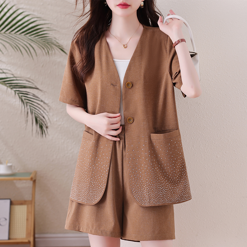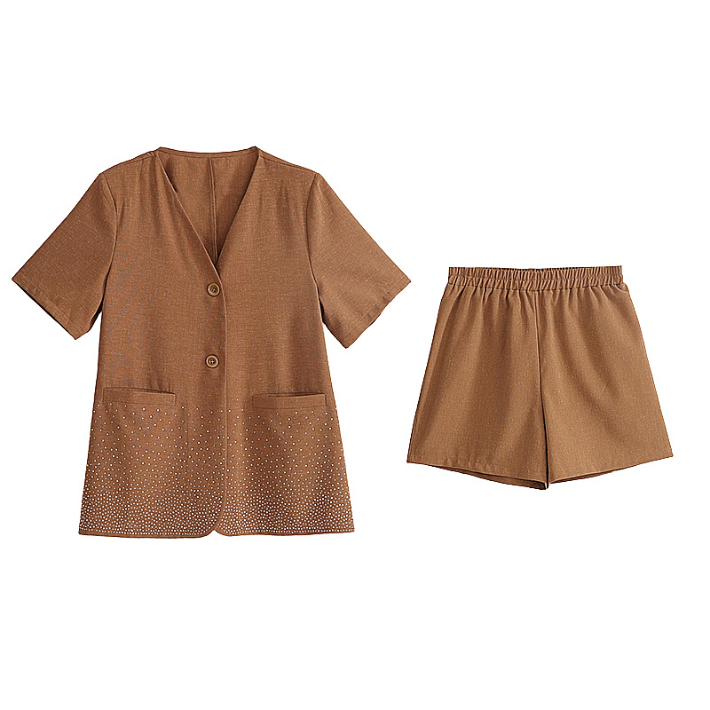 卡其烫钻两件套